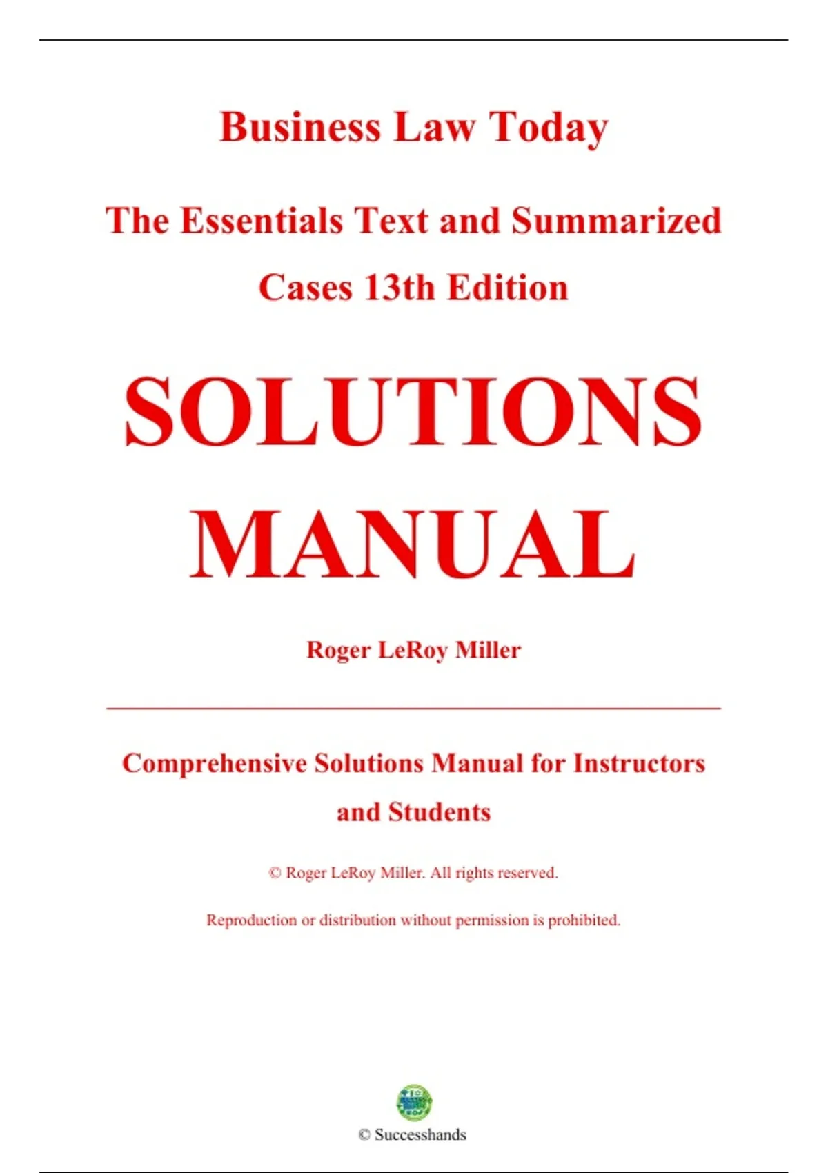 , Solution and Answer Guide: Miller, Business Law Today, The Essentials Text & Summarized Cases 13e, 9780357635346;
