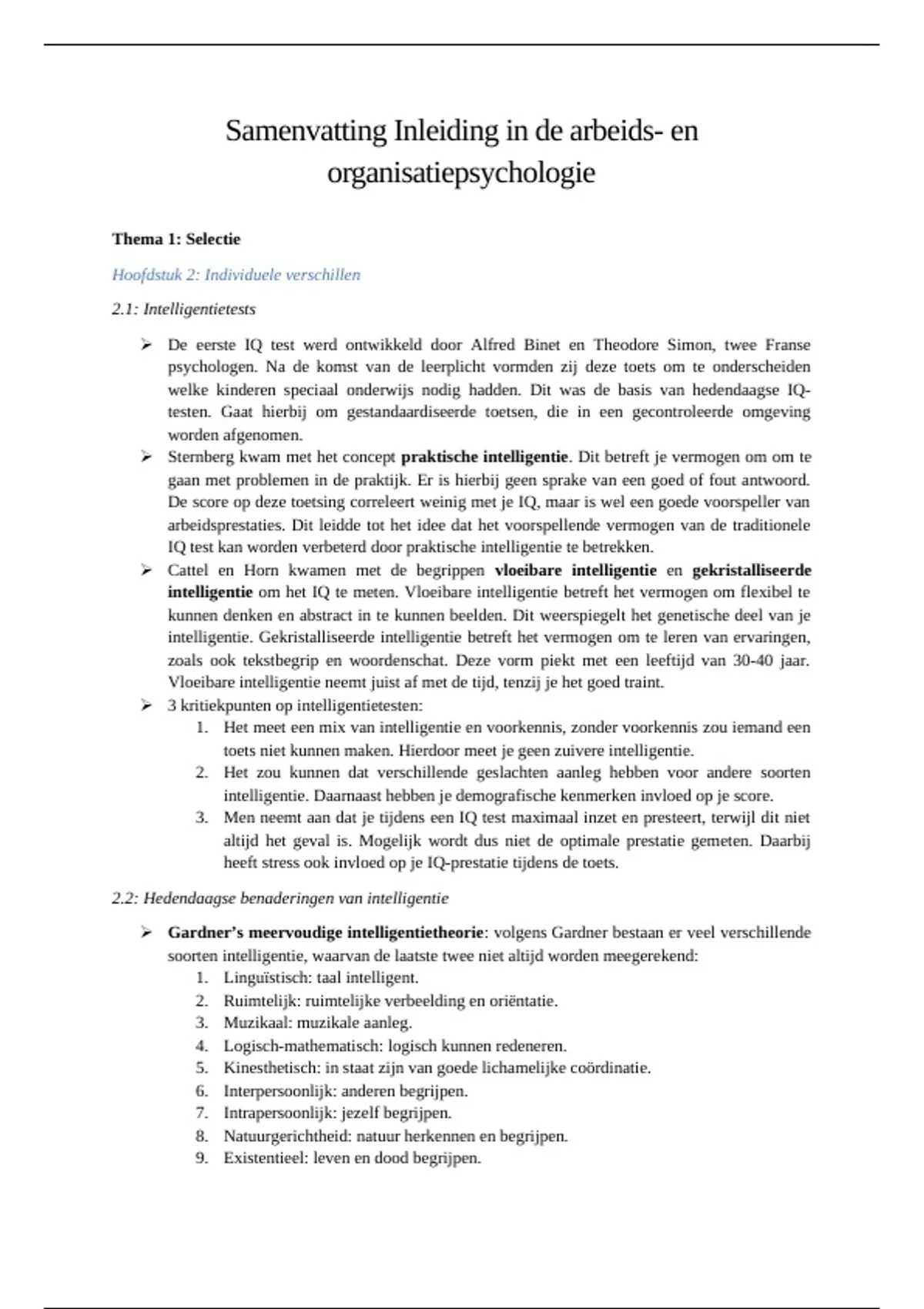 Samenvatting voor het vak Inleiding in de arbeids- en organisatiepsychologie aan de Open Universiteit.
