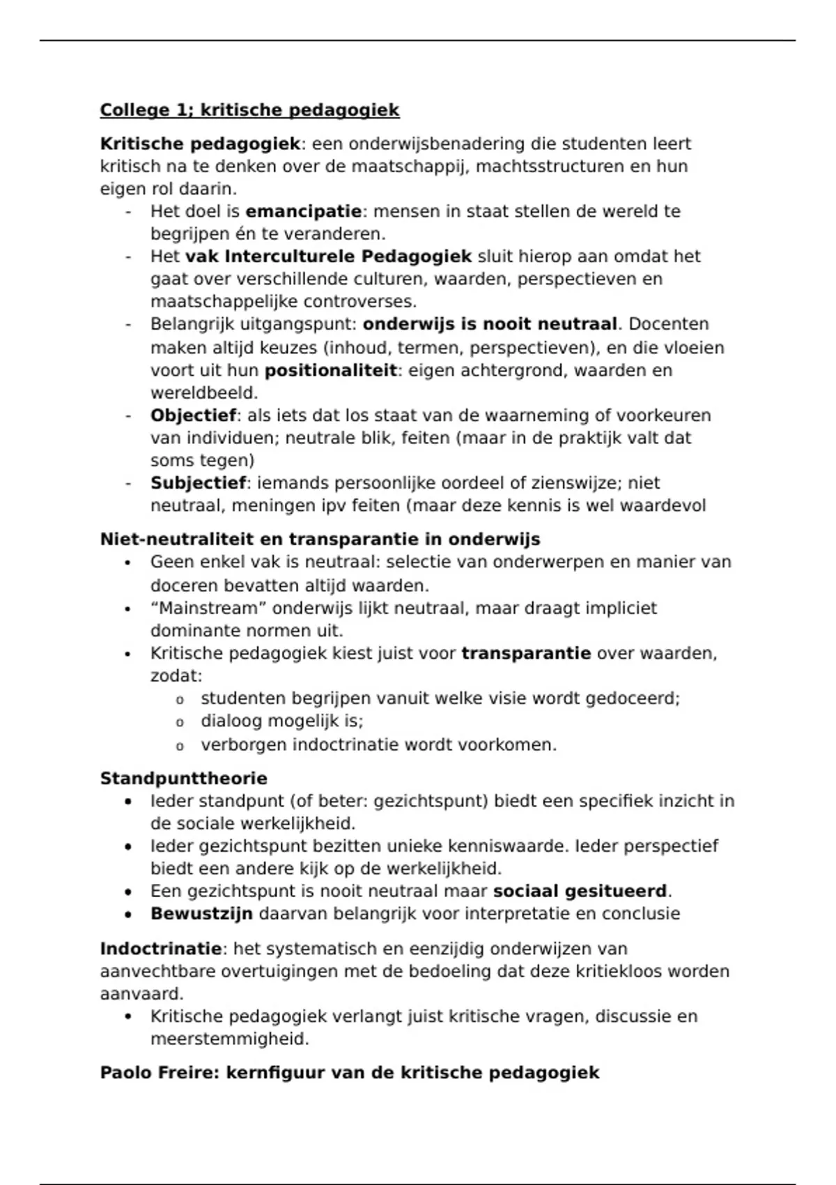 College 1; kritische pedagogiek