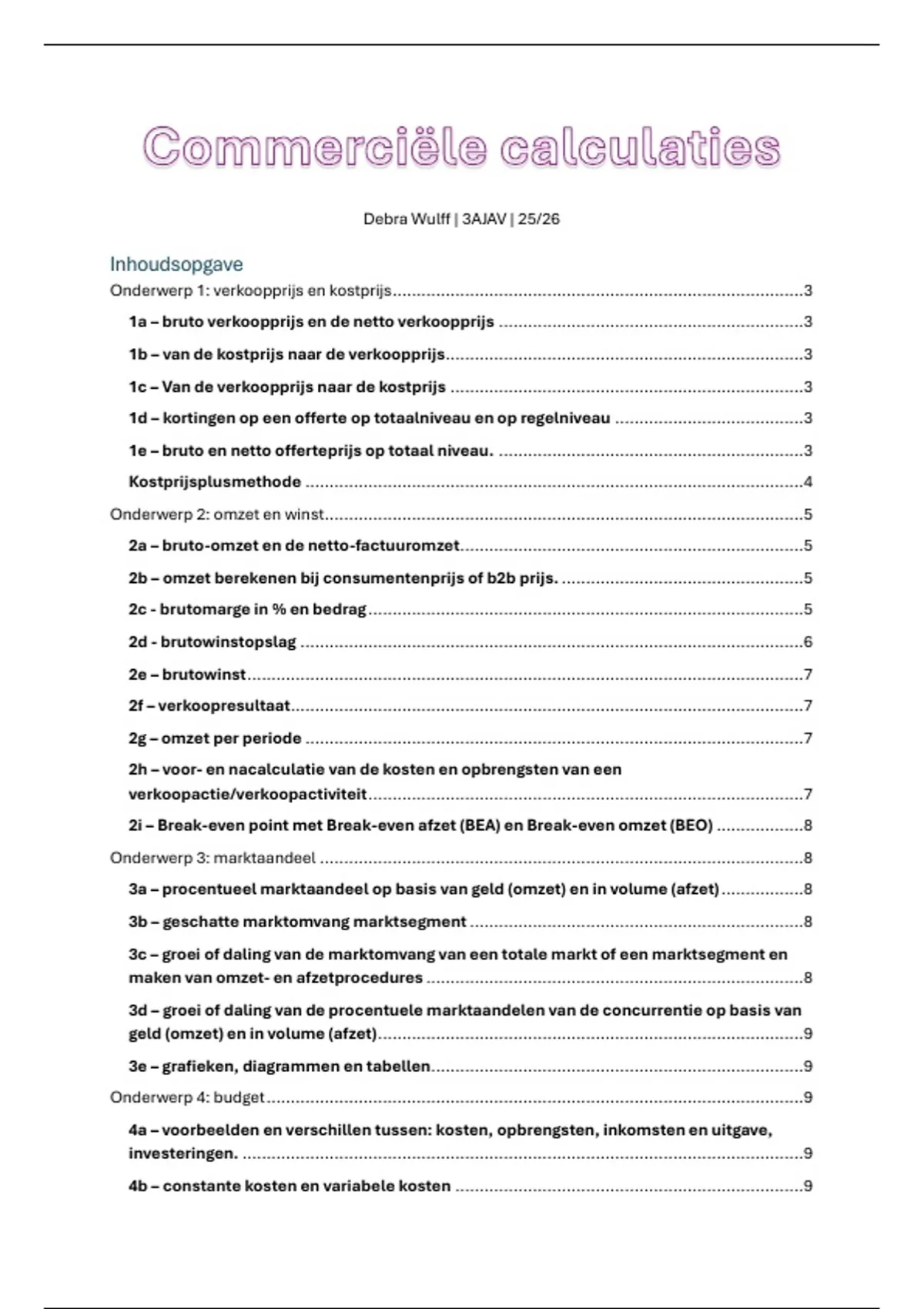 Onderwerp 1: verkoopprijs en kostprijs.....................................................................................3