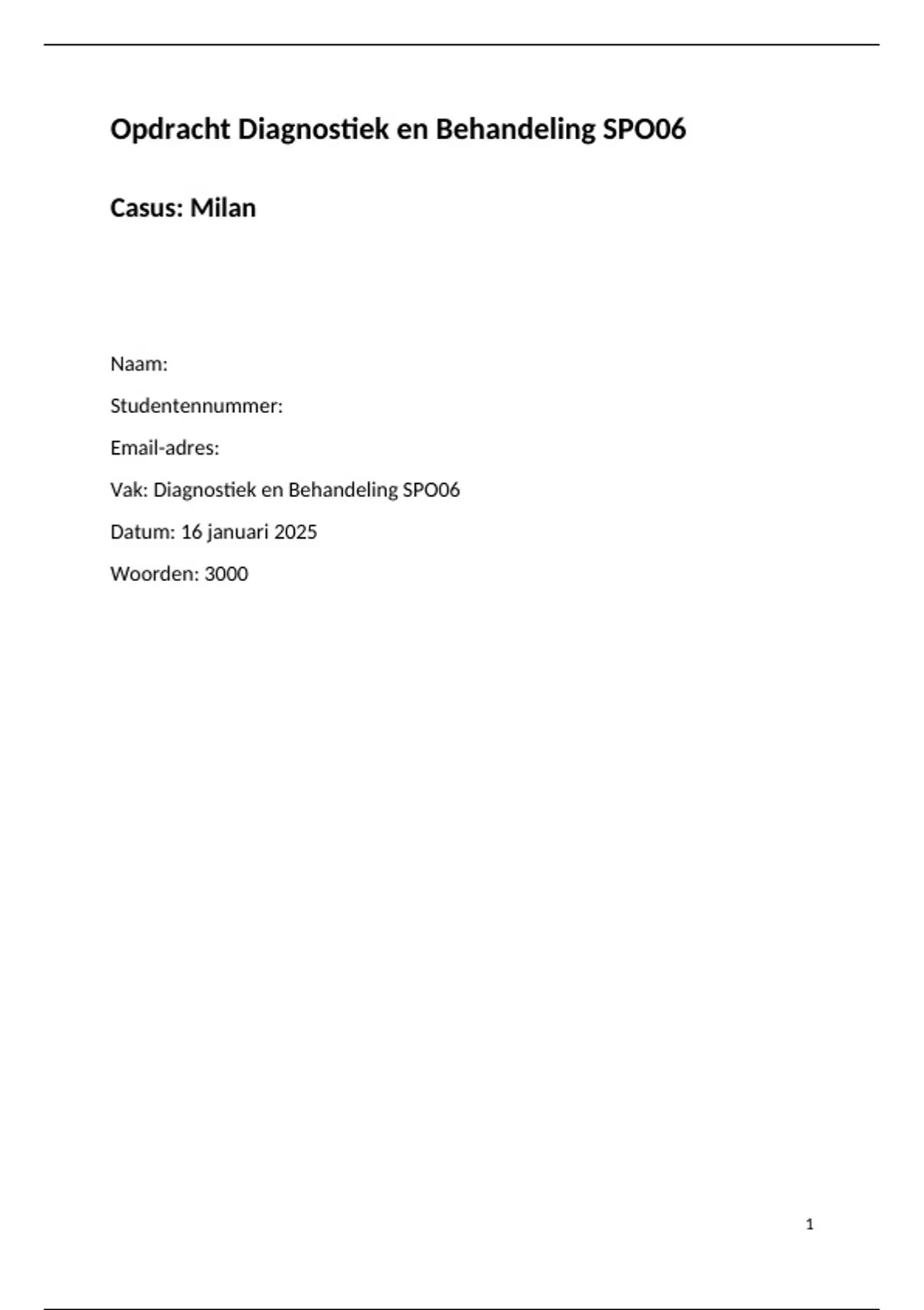 Voor het vak Diagnostiek en behandeling van de SPO heb ik een verslag / integrale casusbeschrijving moeten maken over de casus Sander (in het verslag heet de cliënt Milan ivm privacy). Het verslag is beoordeeld met een 7.8