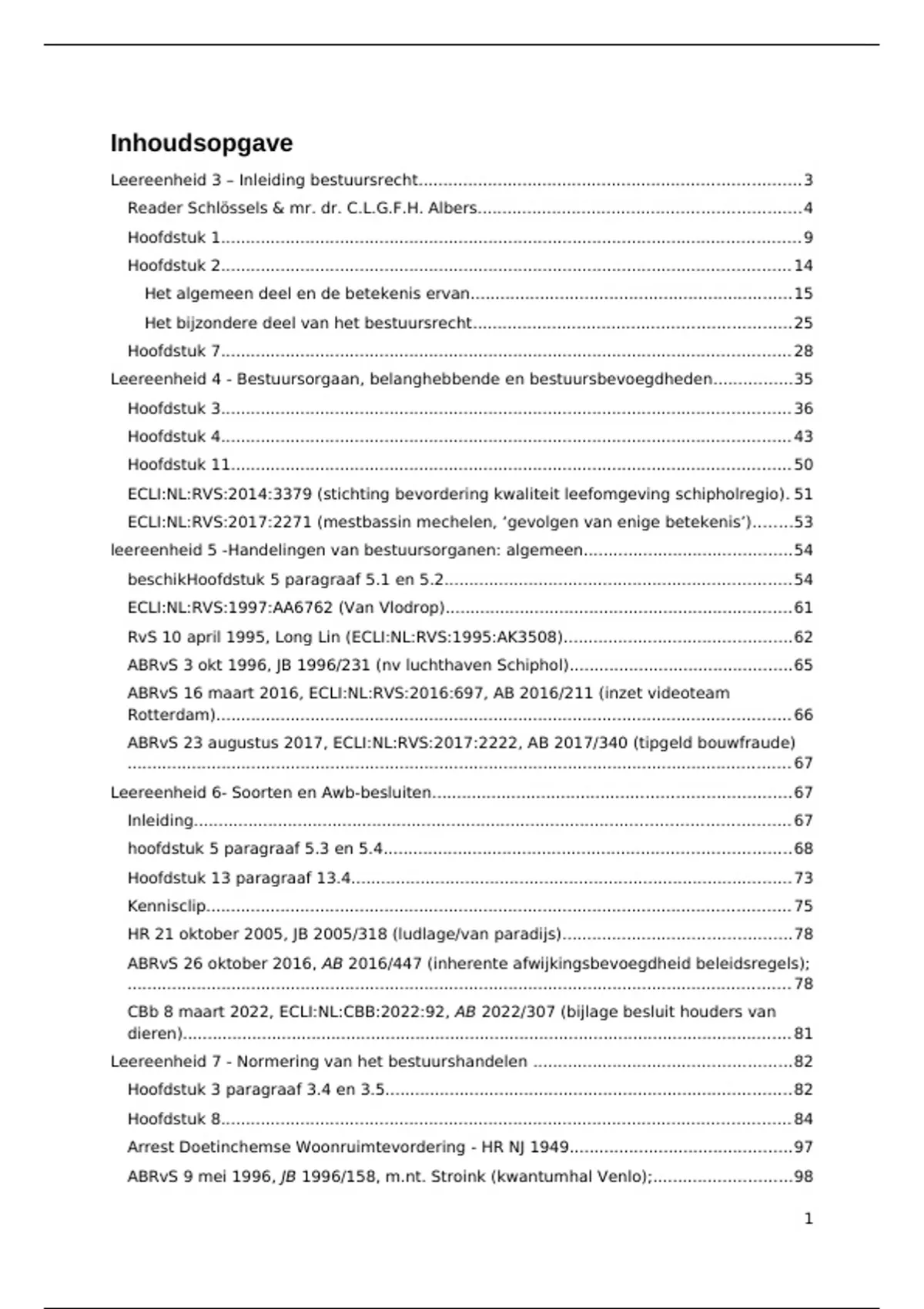 Leereenheid 6- Soorten en Awb-besluiten........................................................................67