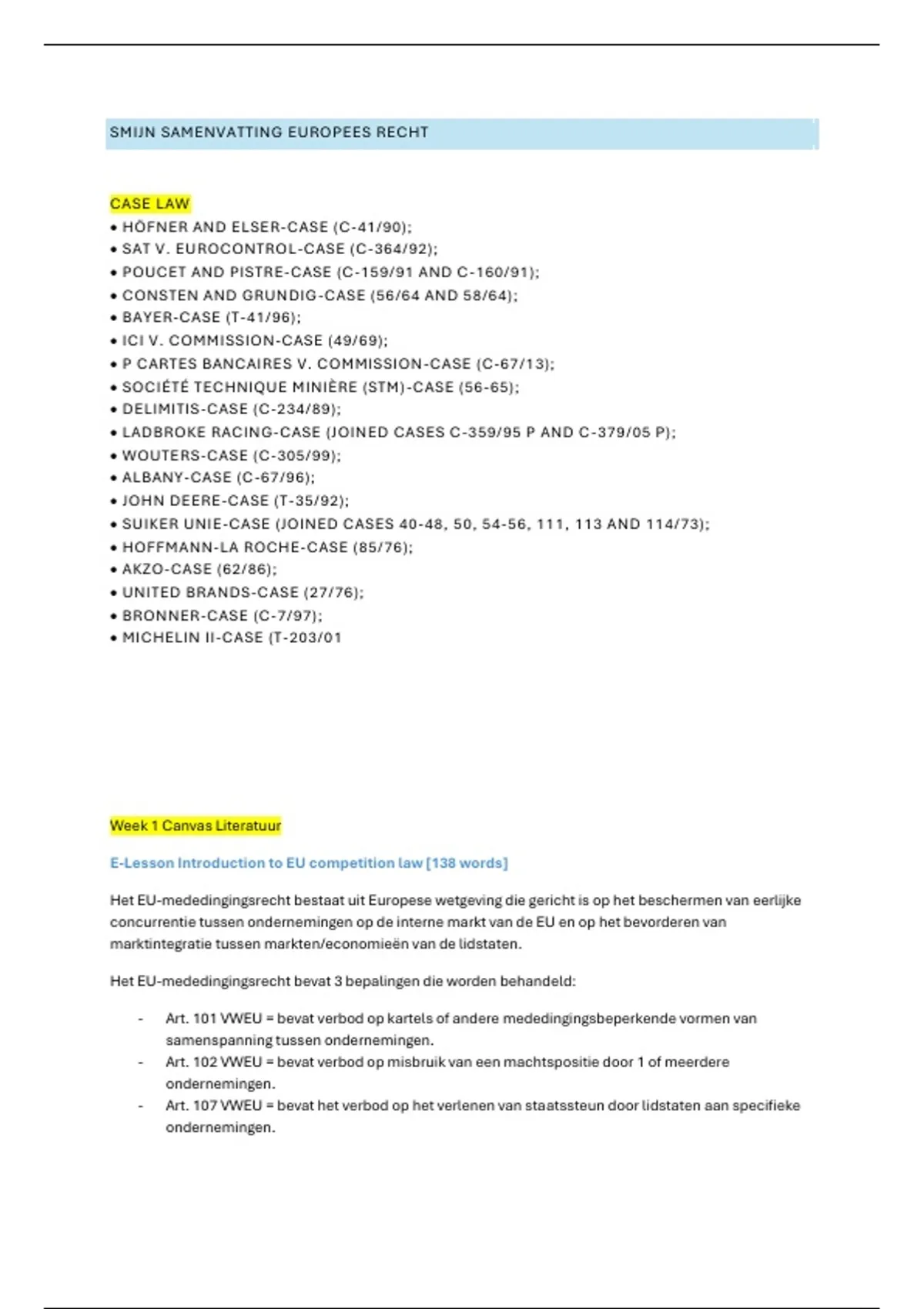 SMIJN SAMENVATTING EUROPEES RECHT