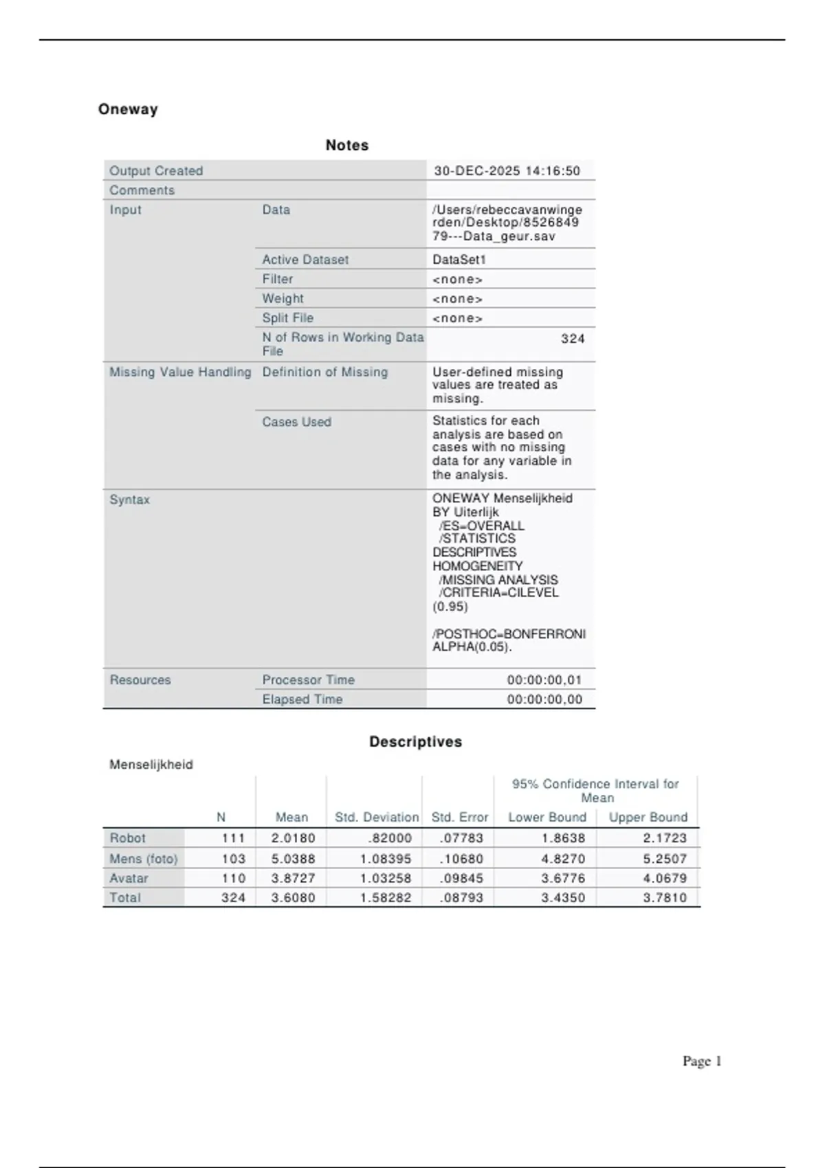 Menselijkheid Based on Mean 8.037 2 321 <.001