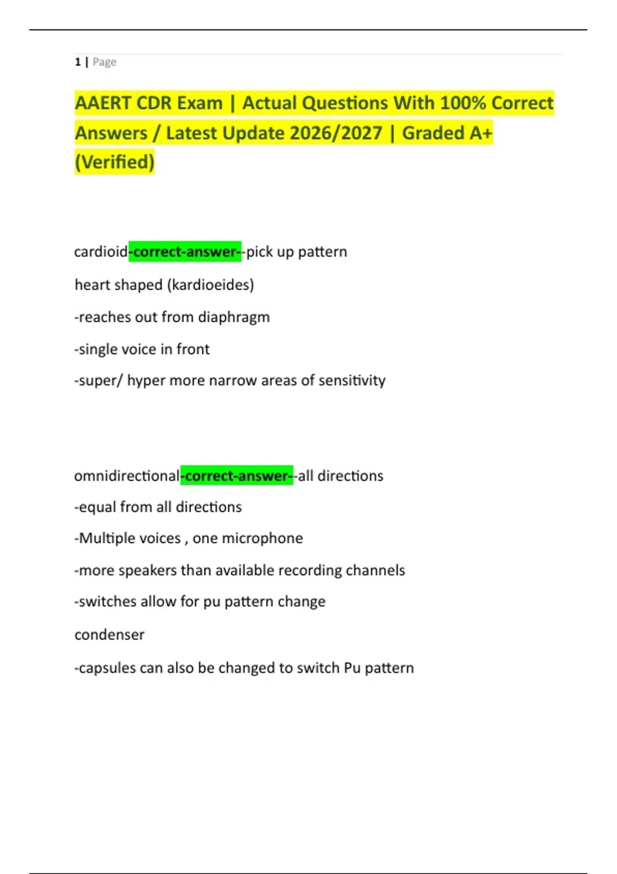 AAERT CDR Exam | Actual Questions With 100% Correct
