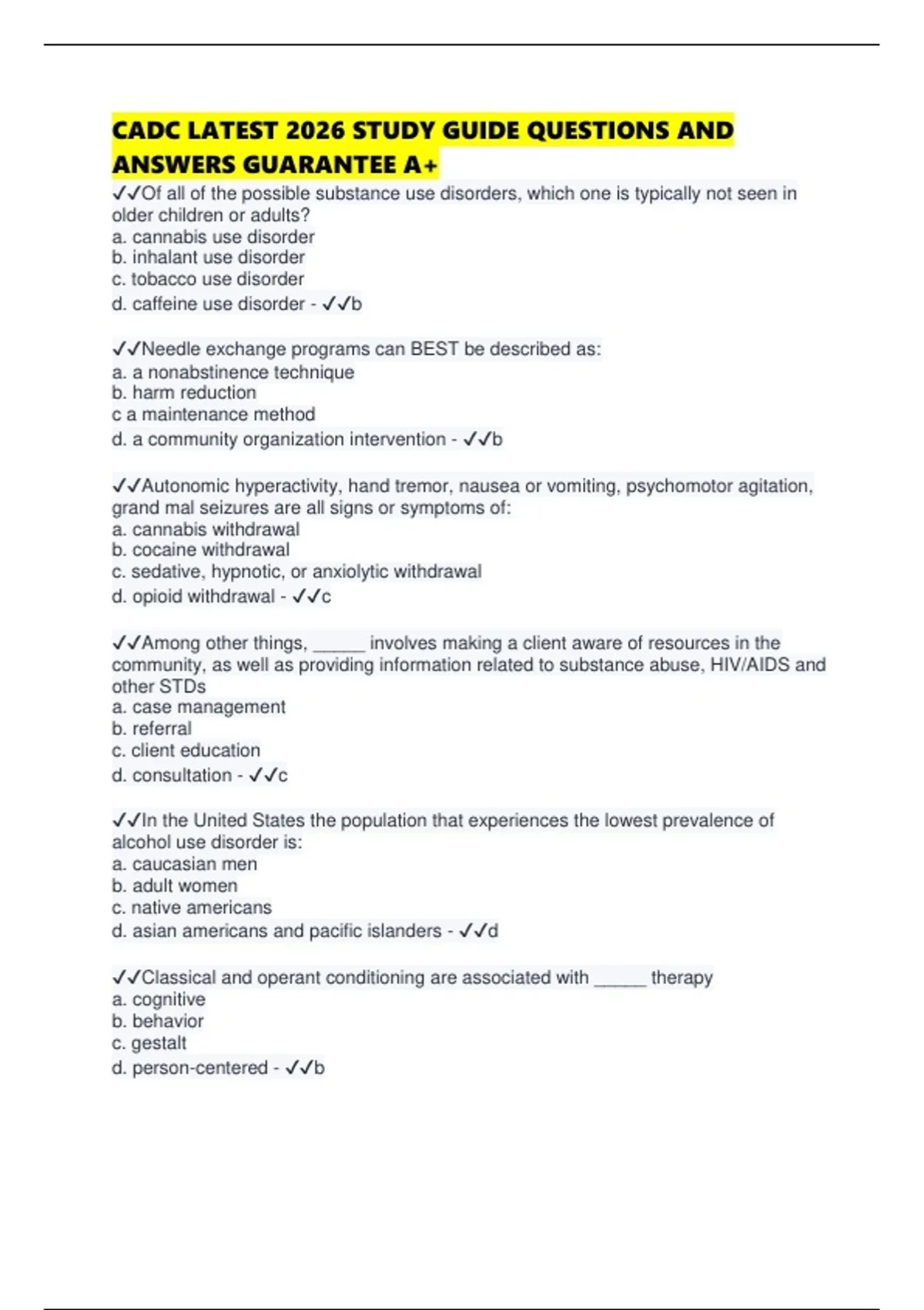 CADC LATEST 2026 STUDY GUIDE QUESTIONS AND