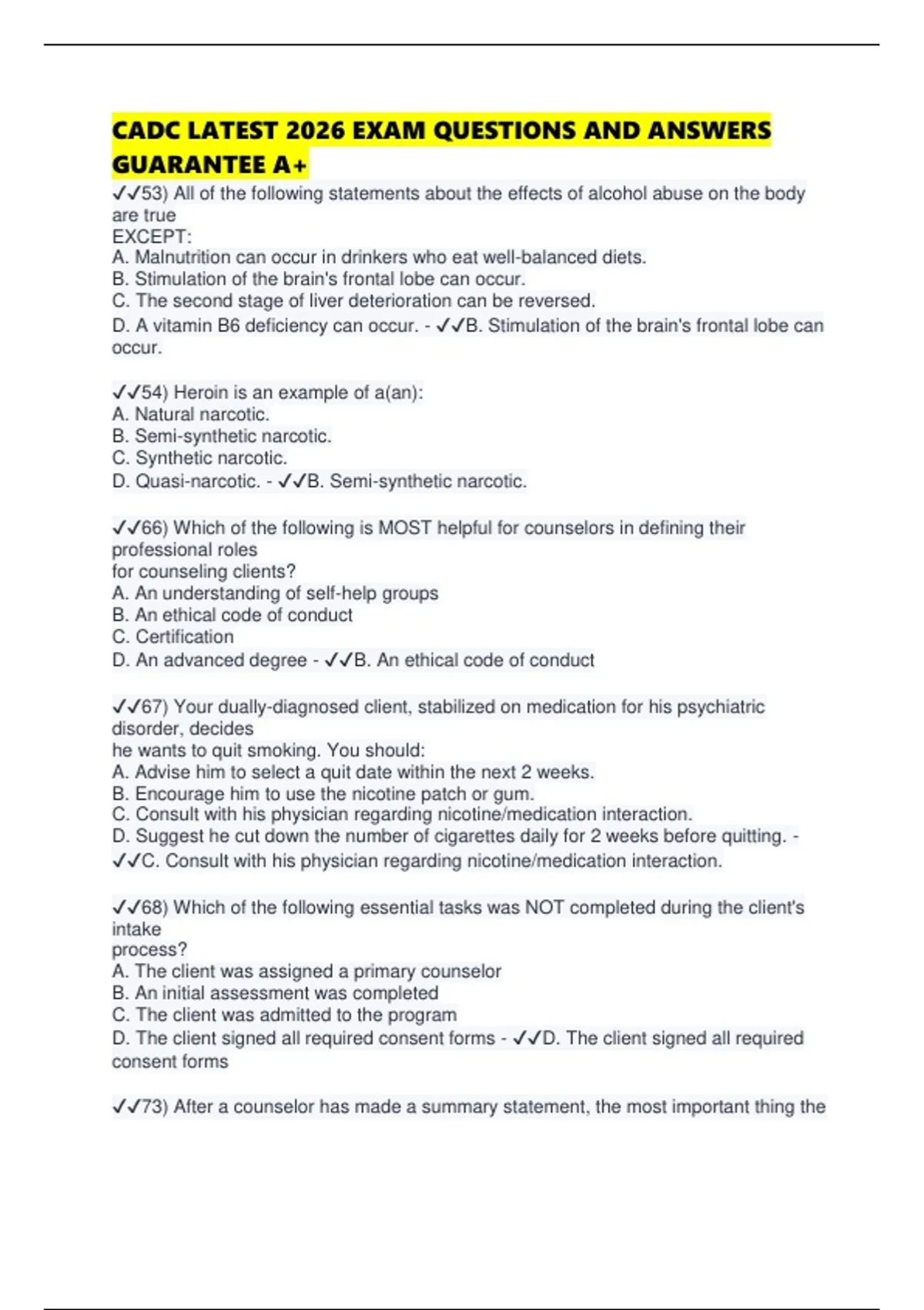 CADC LATEST 2026 EXAM QUESTIONS AND ANSWERS GUARANTEE A+