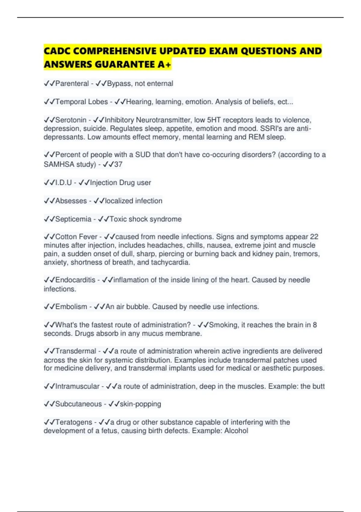 CADC COMPREHENSIVE UPDATED EXAM QUESTIONS AND