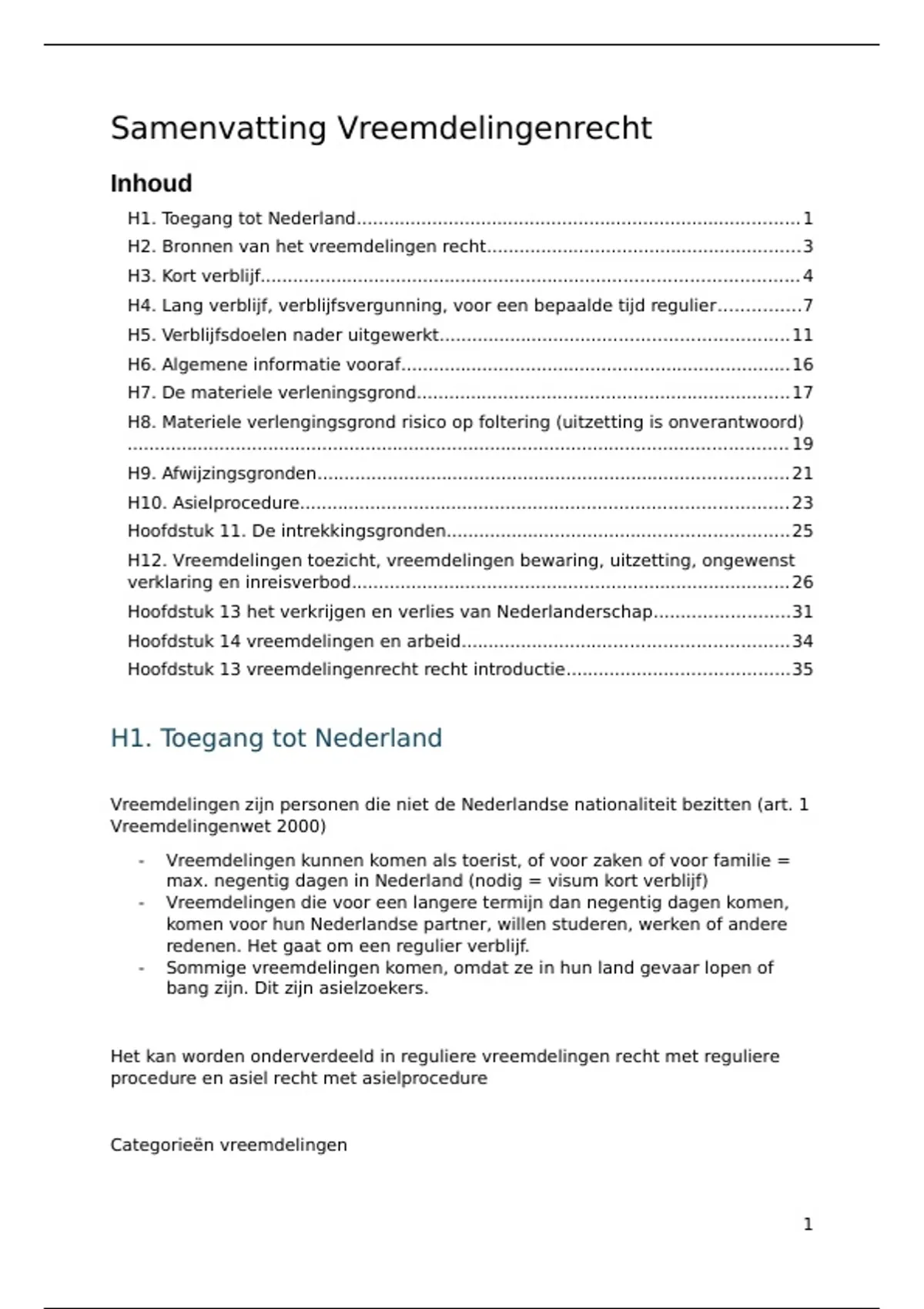 Hoofdstuk 13 vreemdelingenrecht recht introductie.........................................35