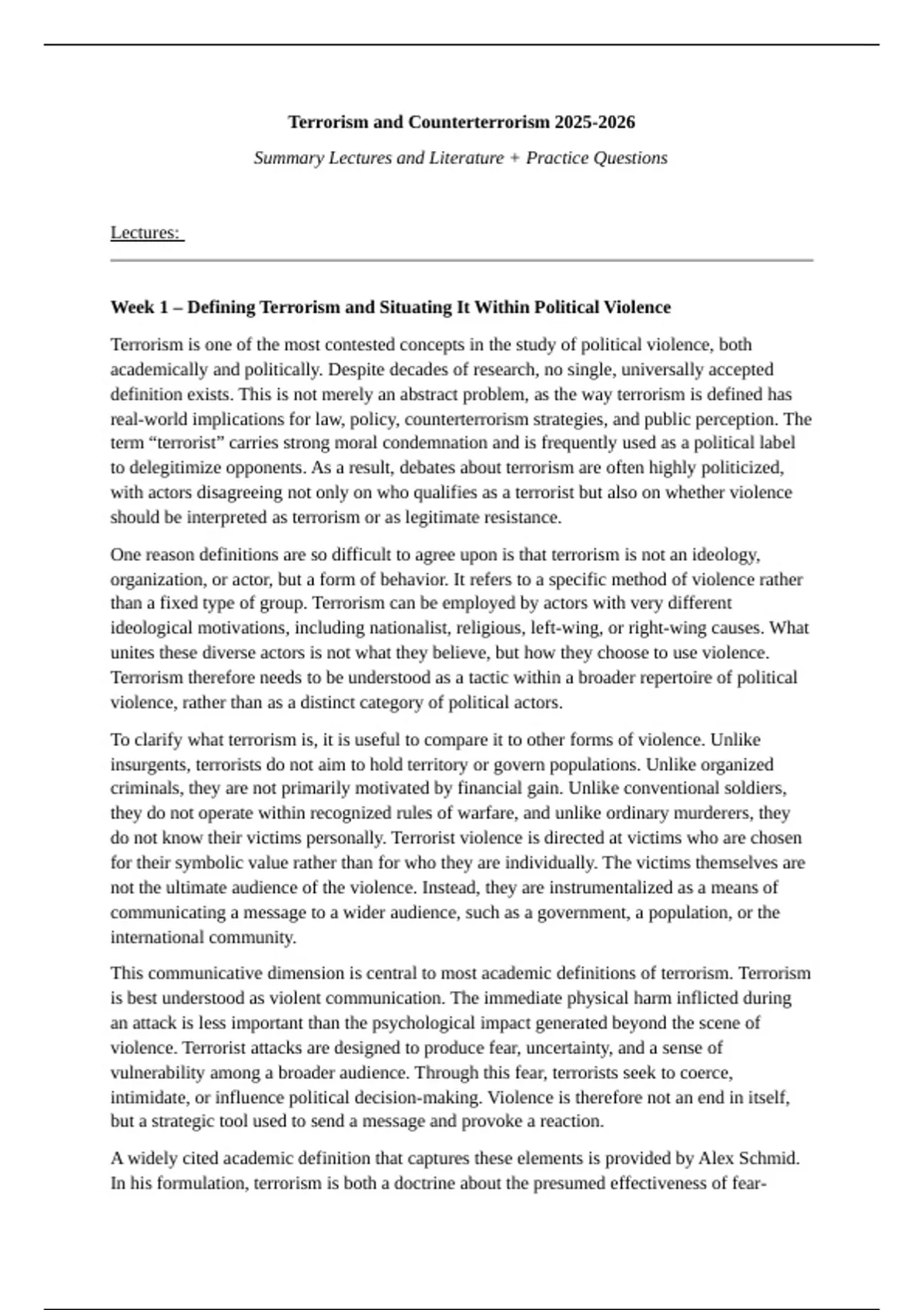 Summary Lectures and Literature + Practice Questions