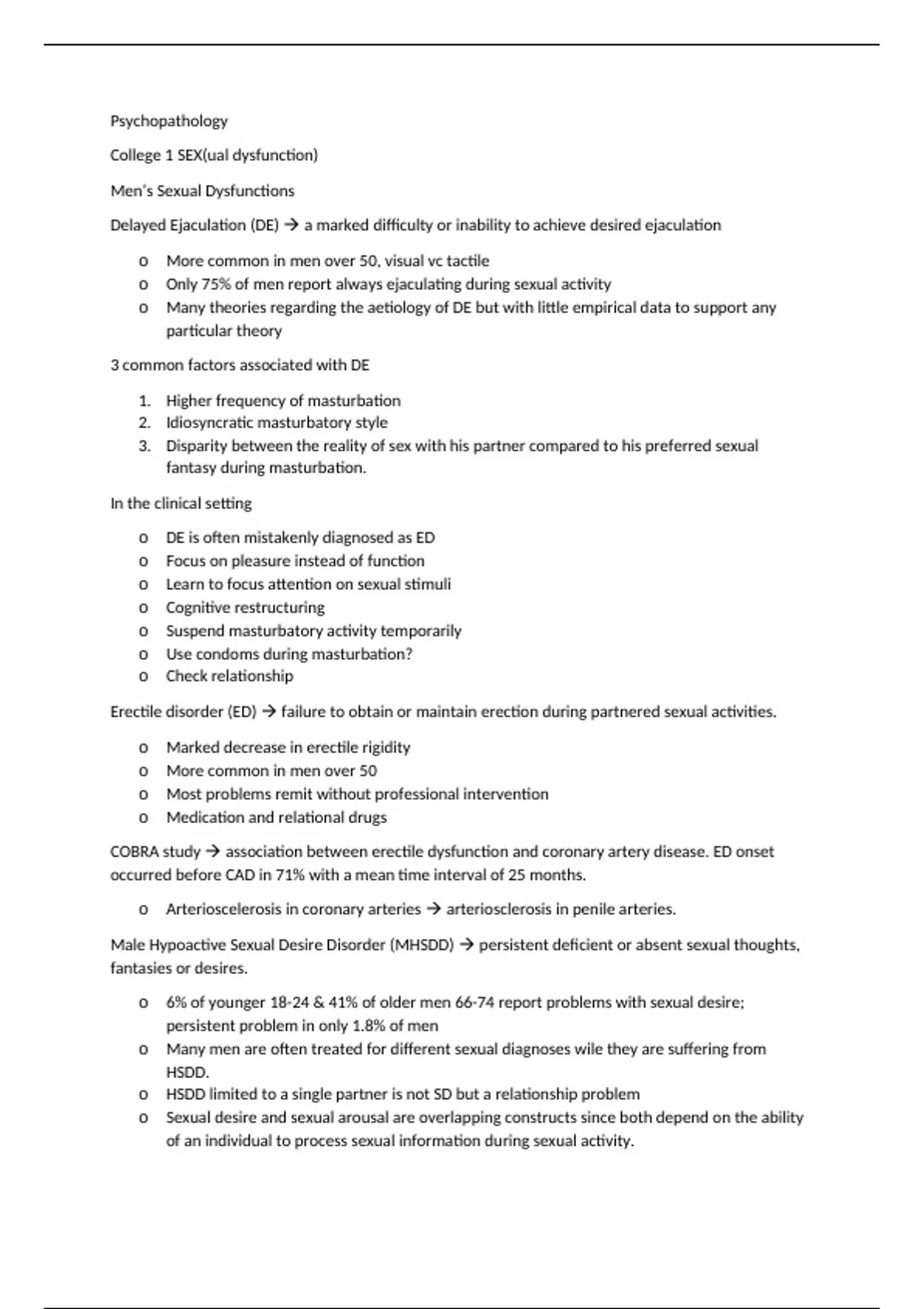 In deze samenvatting is alle collegestof uit jaar 25/26 uitgebreid besproken. Ook zijn er vele andere diverse stoornissen uit de DSM-V uitgewerkt met omschrijvingen en overzichten van clusters.