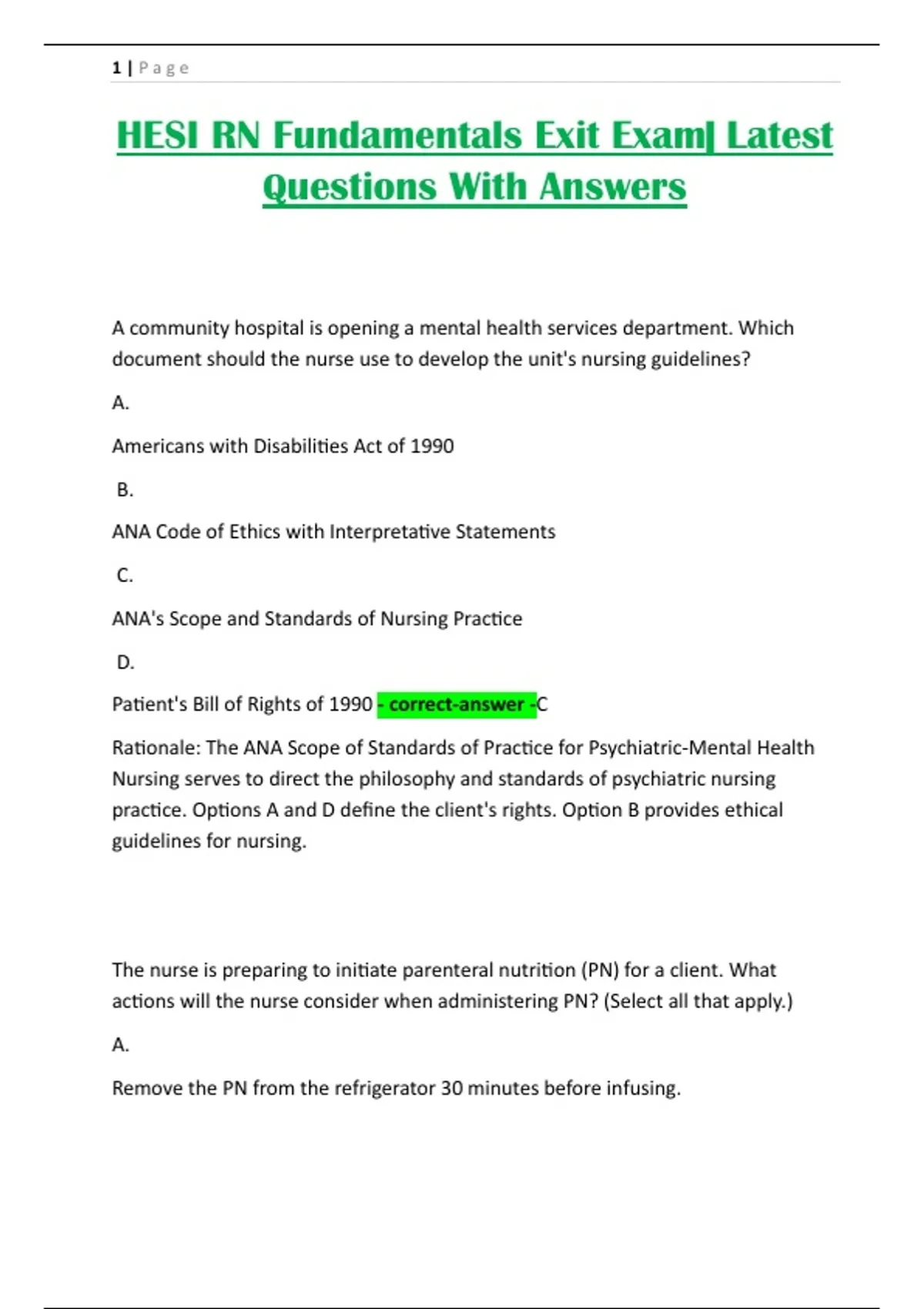 Patient's Bill of Rights of 1990 - correct-answer -C