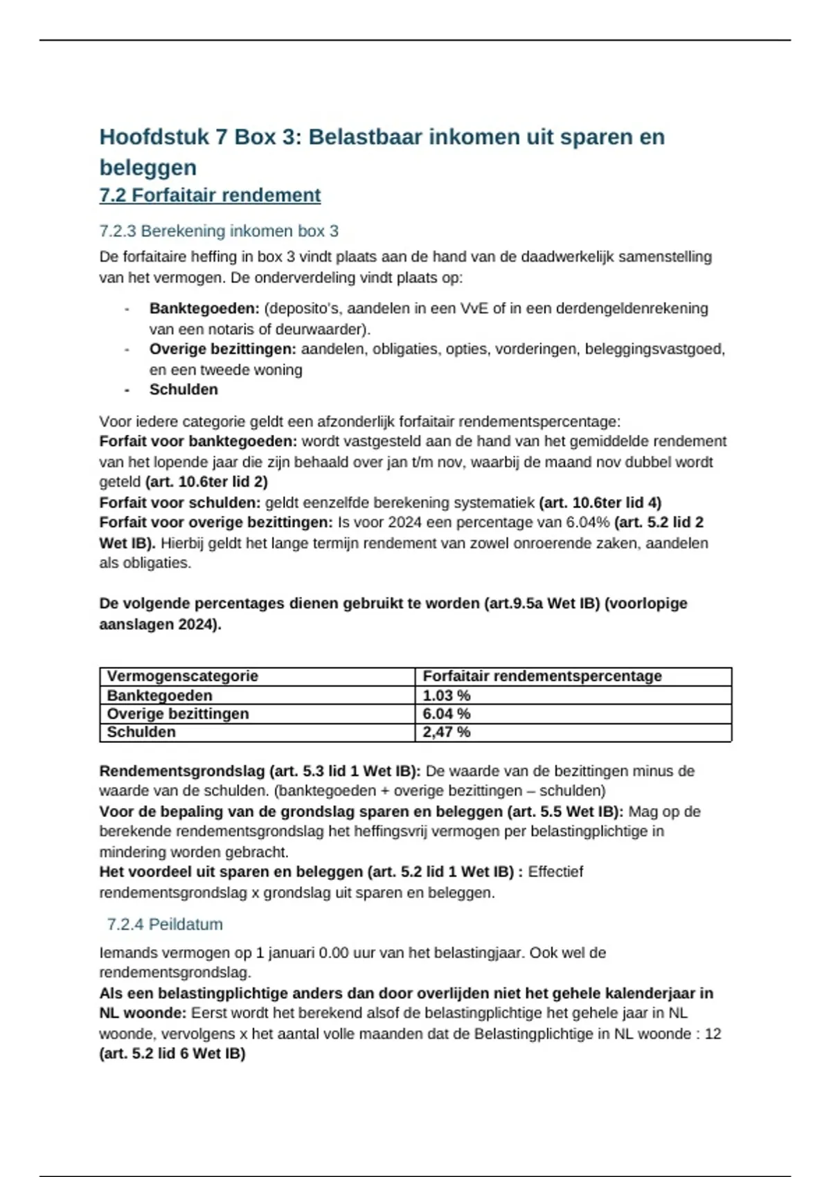 Samenvatting Hoofdstuk 7 Box 3 inkomen uit sparen en beleggen