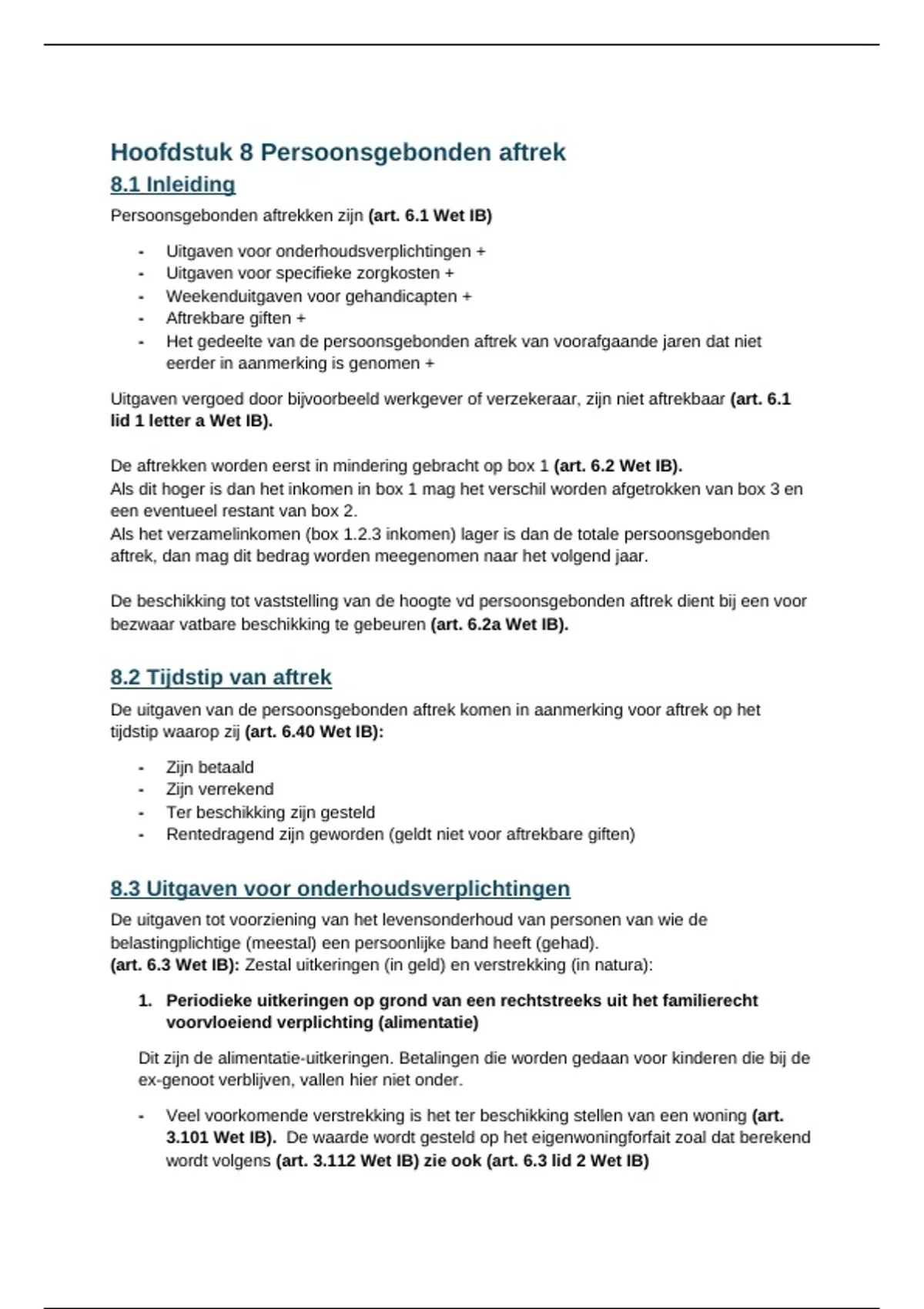 Samenvatting Hoofdstuk 8 Persoonsgebonden aftrek