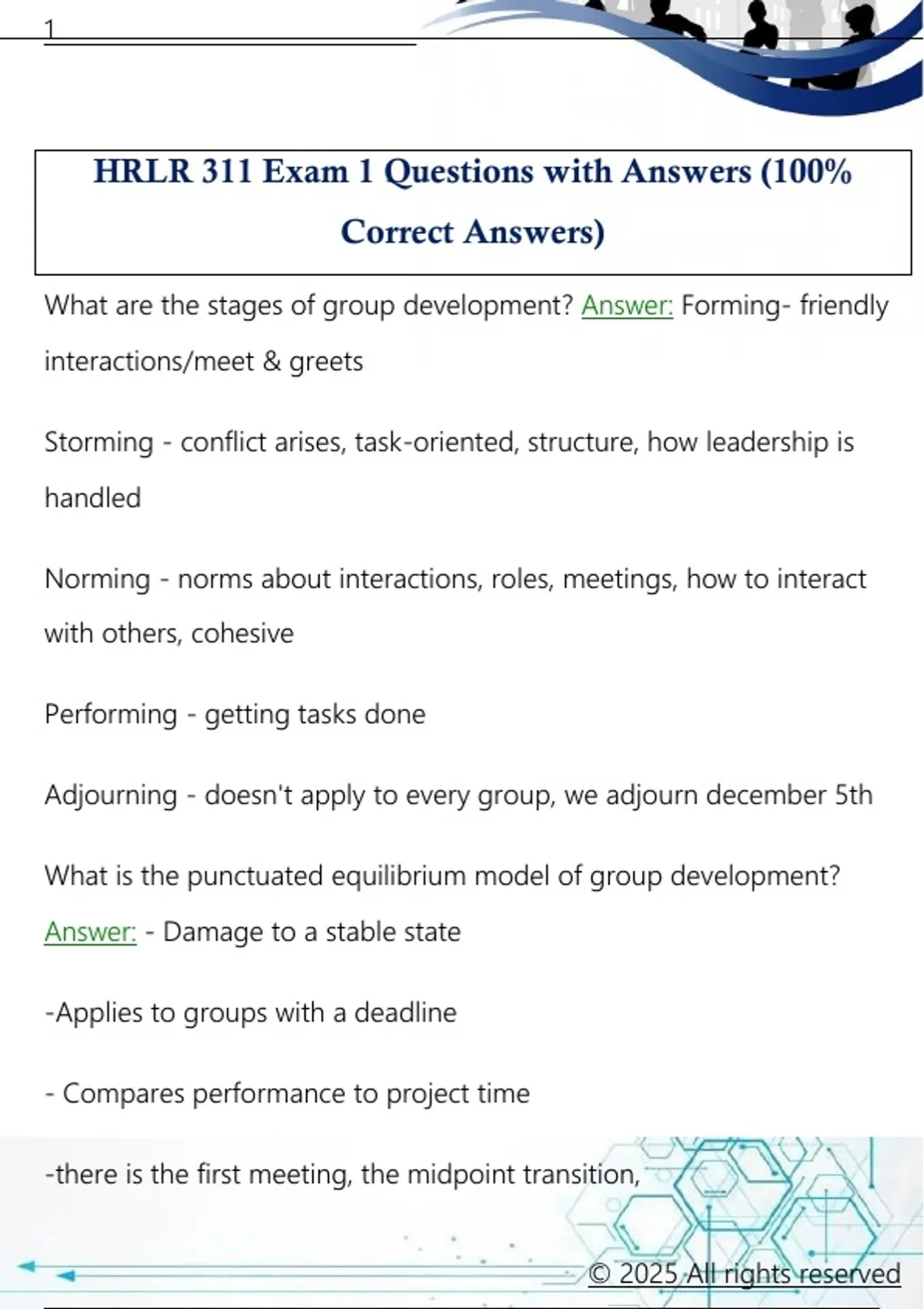HRLR 311 Exam 1 Questions with Answers (100% Correct Answers)HRLR 311 Exam 1 Questions with Answers (100% Correct Answers)