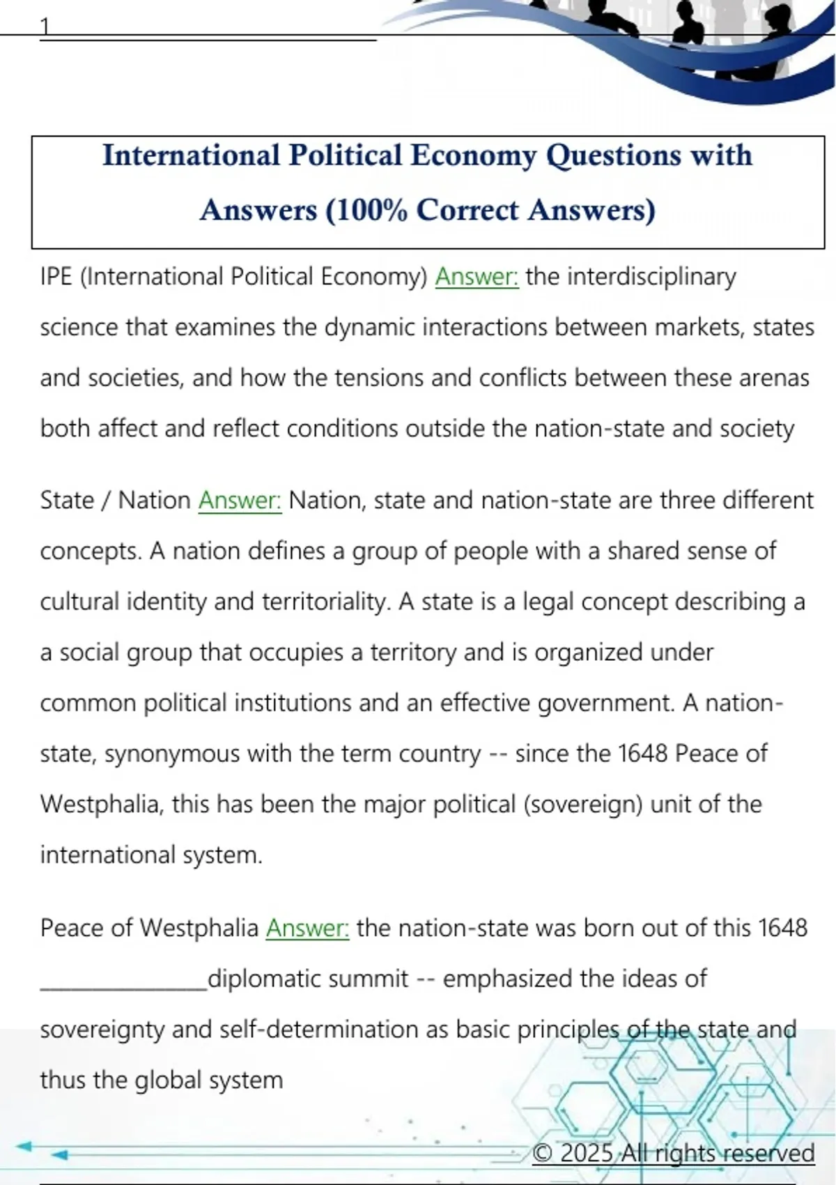 International Political Economy Questions with Answers (100% Correct Answers) International Political Economy Questions with Answers (100% Correct Answers)