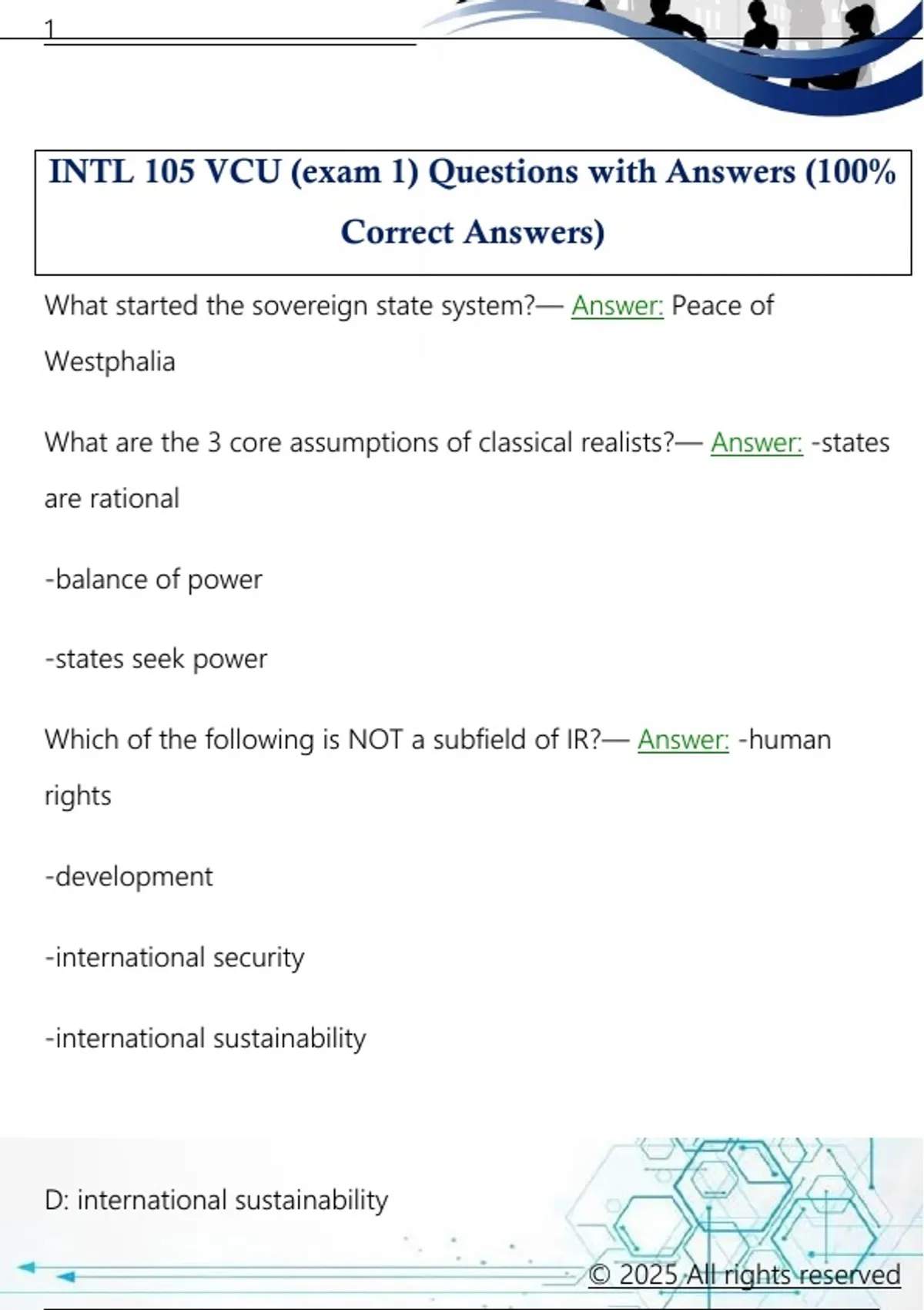 INTL 105 VCU (exam 1) Questions with Answers (100% Correct Answers)INTL 105 VCU (exam 1) Questions with Answers (100% Correct Answers)