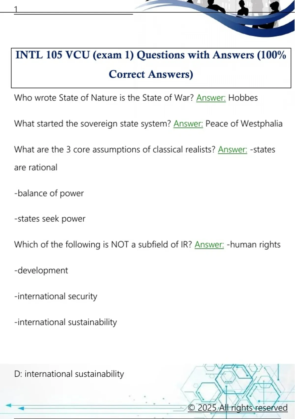 INTL 105 VCU (exam 1) Questions with Answers (100% Correct Answers)INTL 105 VCU (exam 1) Questions with Answers (100% Correct Answers)
