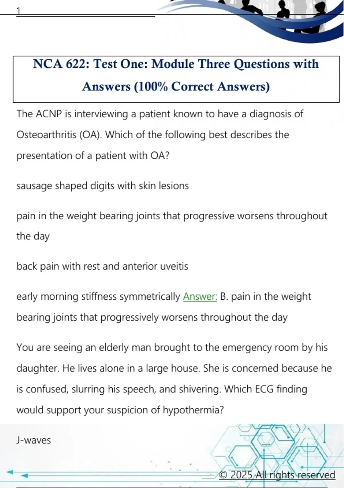 NCA 622: Test One: Module Three Questions with Answers (100% Correct Answers) NCA 622: Test One: Module Three Questions with Answers (100% Correct Answers)