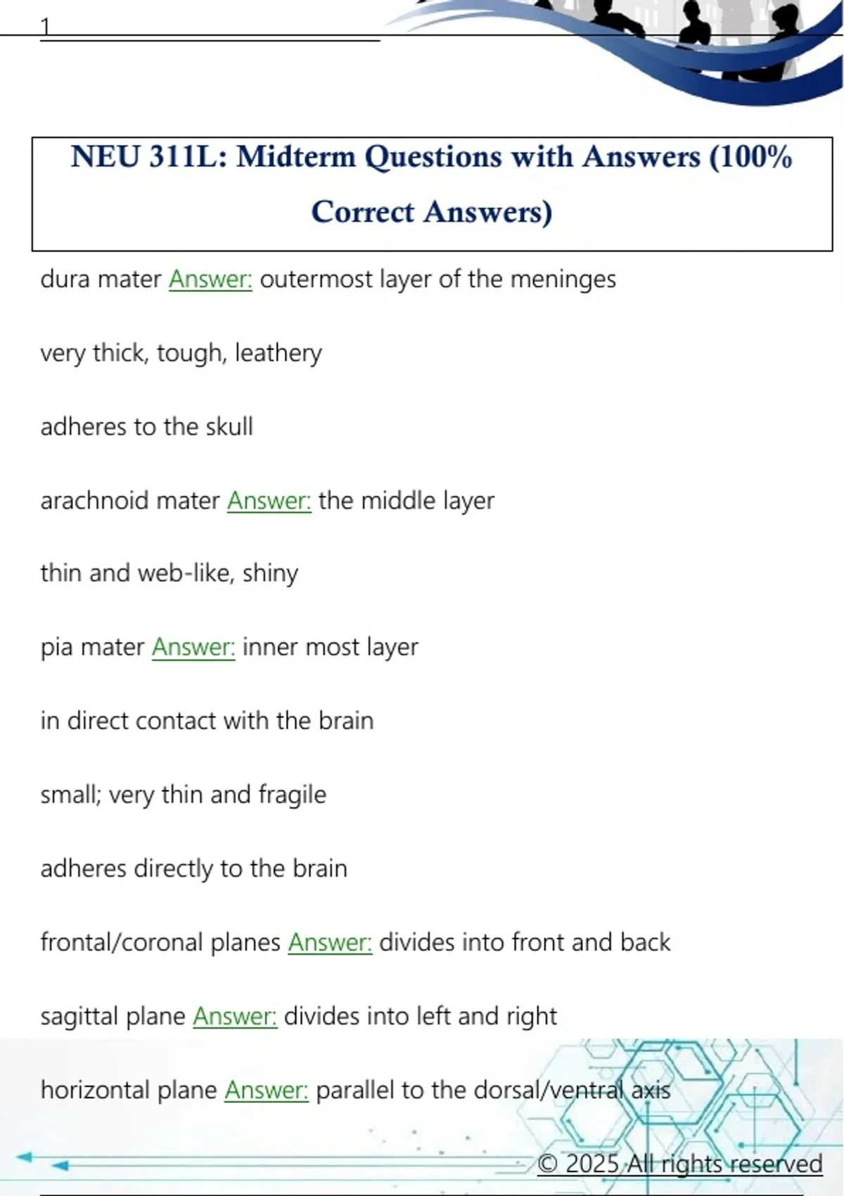 NEU 311L: Midterm Questions with Answers (100% Correct Answers)NEU 311L: Midterm Questions with Answers (100% Correct Answers)