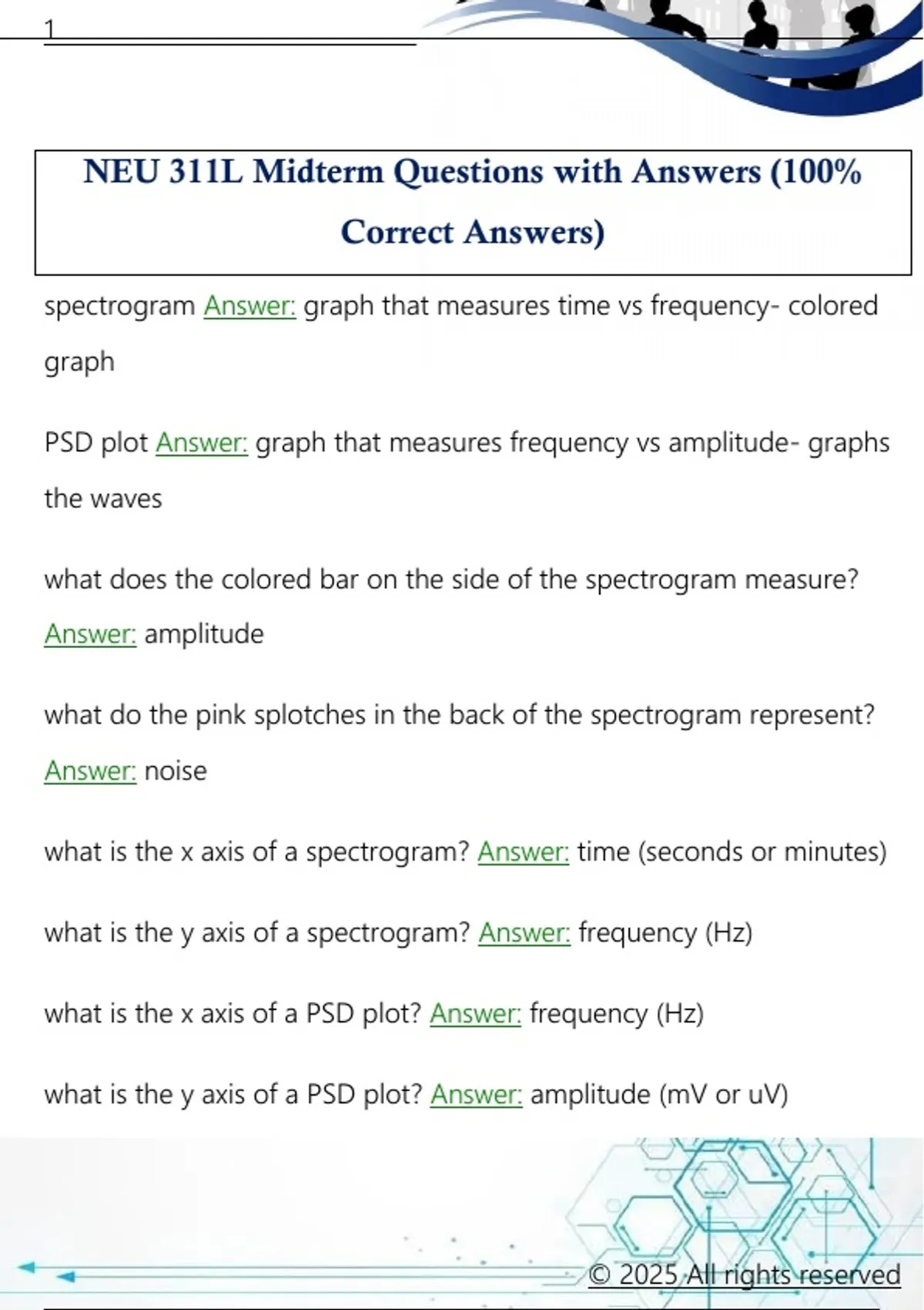 NEU 311L Midterm Questions with Answers (100%