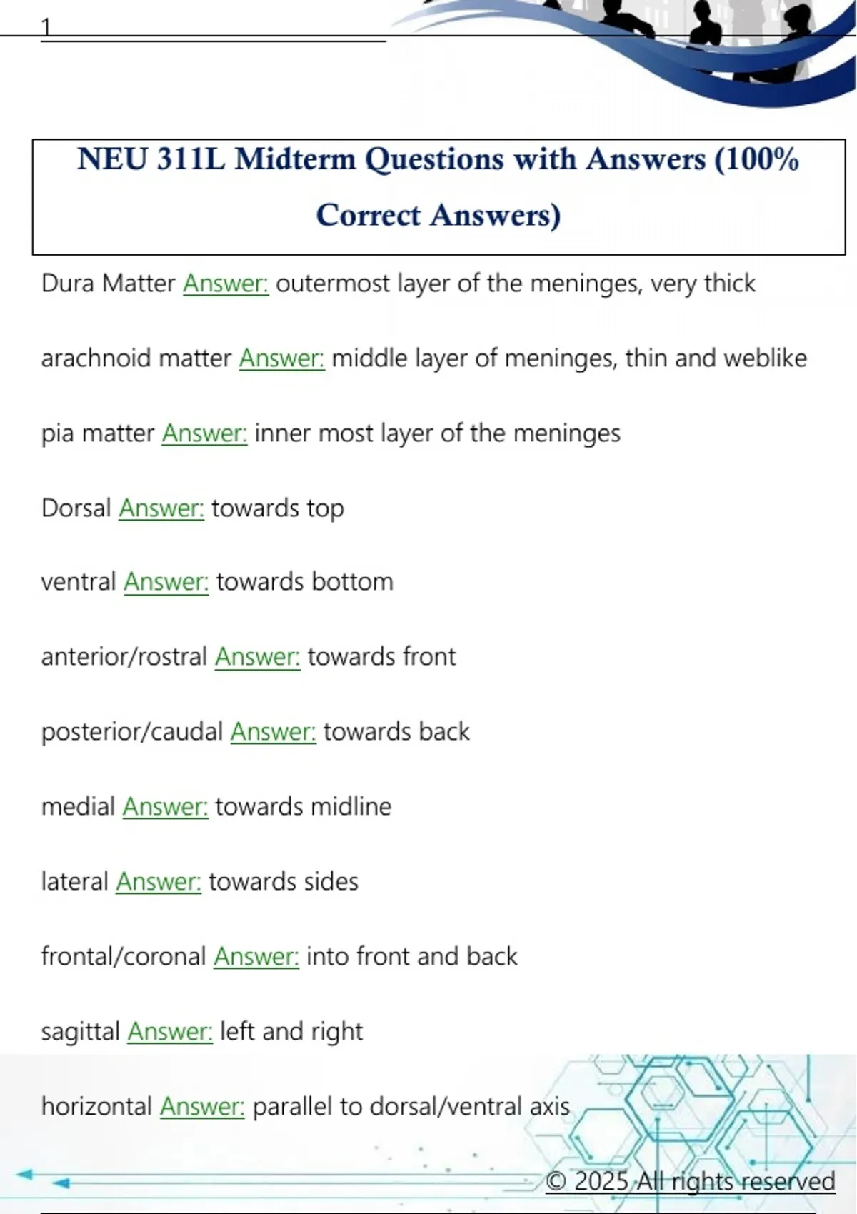 NEU 311L Midterm Questions with Answers (100%