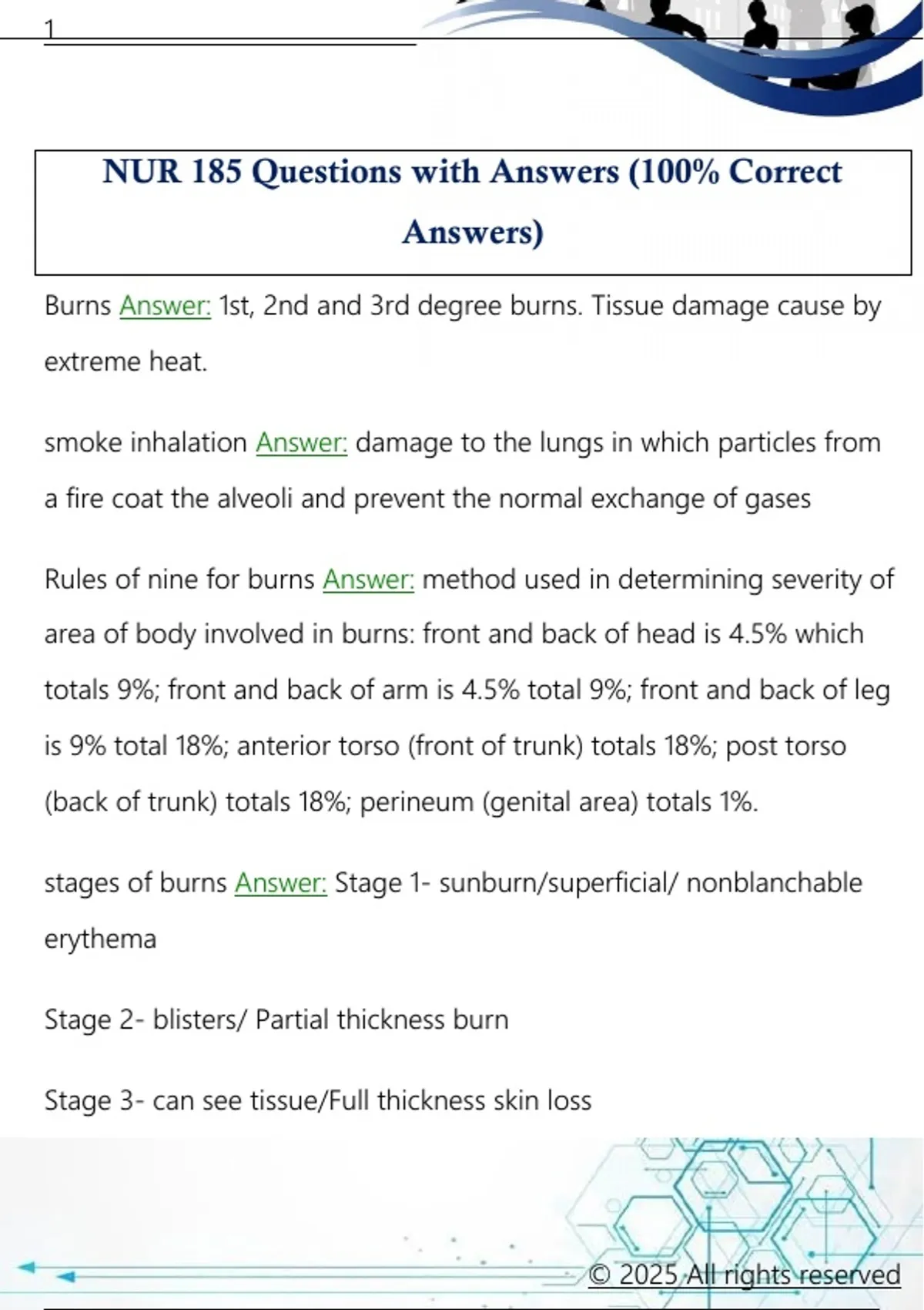 NUR 185 Questions with Answers (100% Correct Answers)