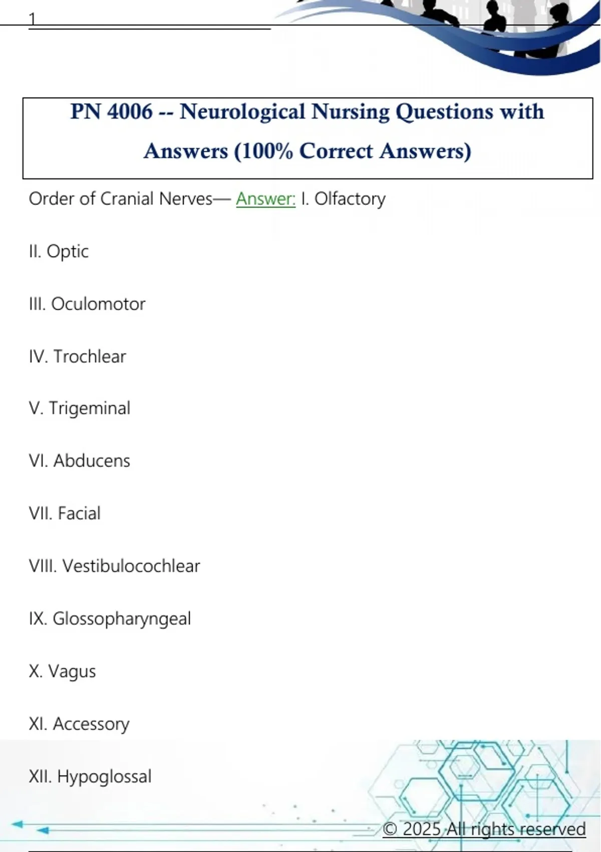 Order of Cranial Nerves— Answer: I. Olfactory