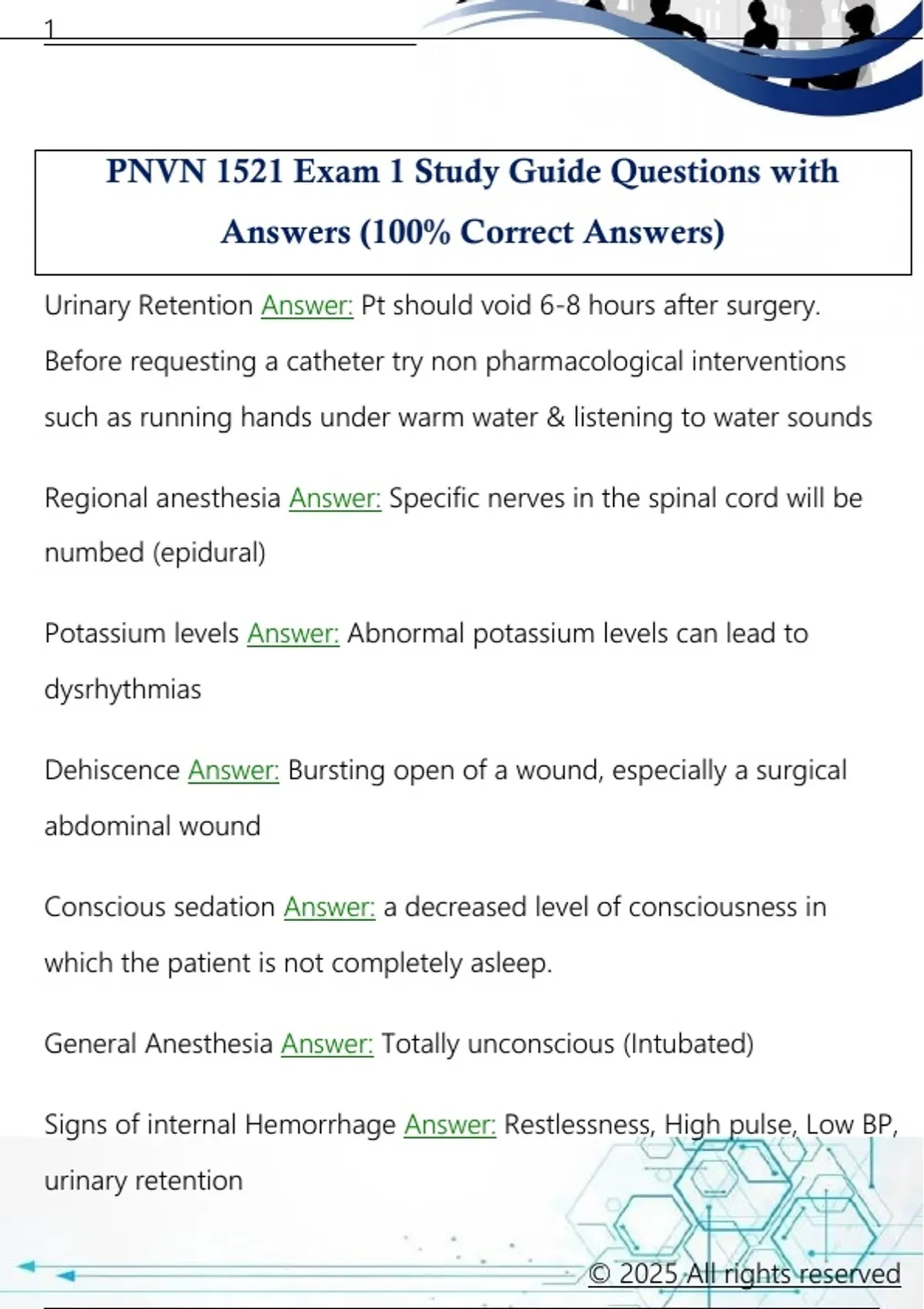 PNVN 1521 Exam 1 Study Guide Questions with Answers (100% Correct Answers)