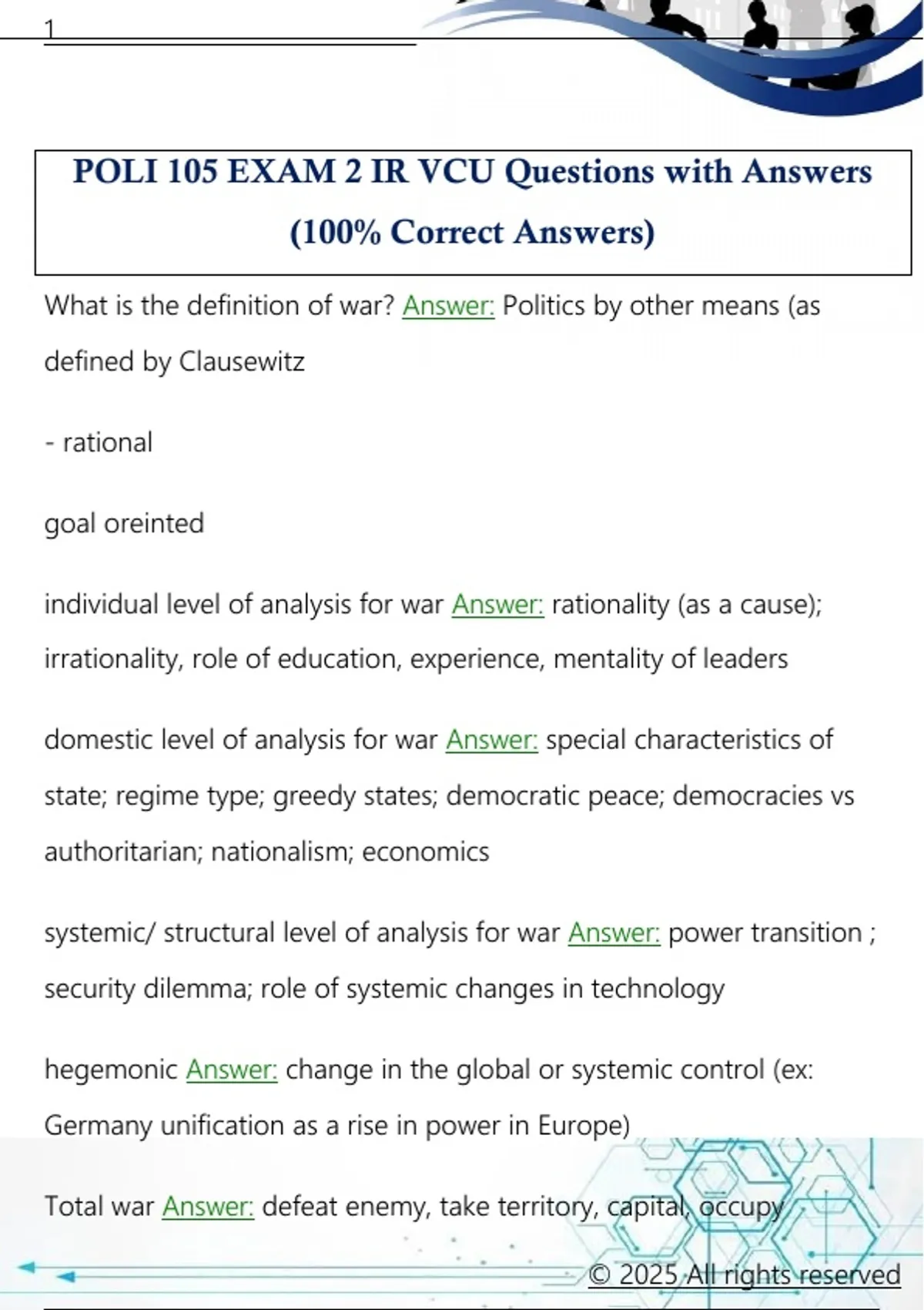 POLI 105 EXAM 2 IR VCU Questions with Answers (100% Correct Answers)