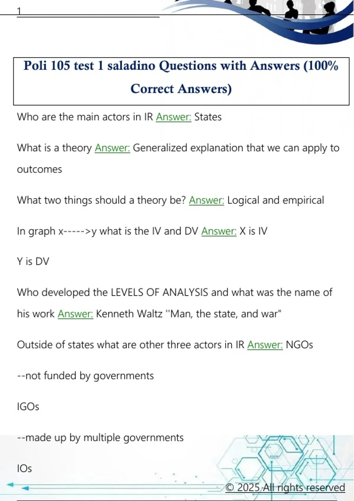 Poli 105 test 1 saladino Questions with Answers (100% Correct Answers)