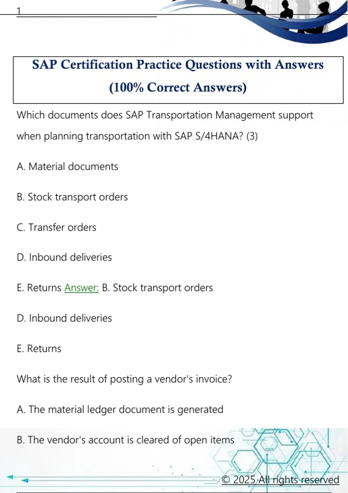 SAP Certification Practice Questions with Answers (100% Correct Answers)