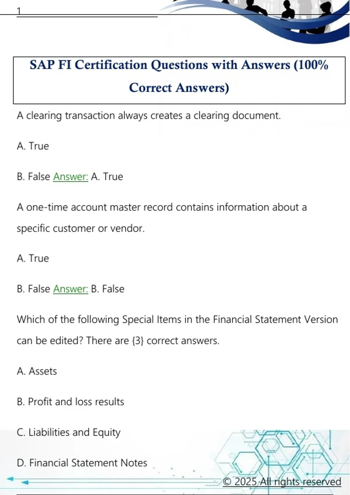 SAP FI Certification Questions with Answers (100% Correct Answers)