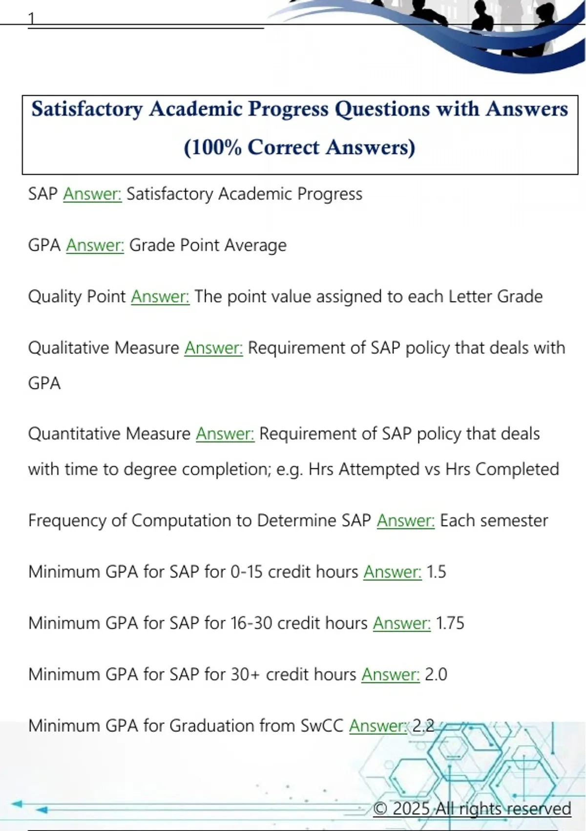 Satisfactory Academic Progress Questions with Answers (100% Correct Answers)
