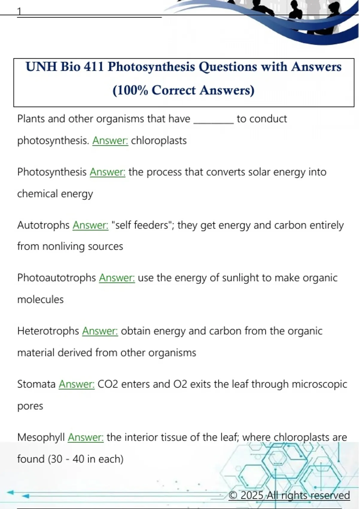Chlorophyll Answer: Where the green color of leaves comes from, a