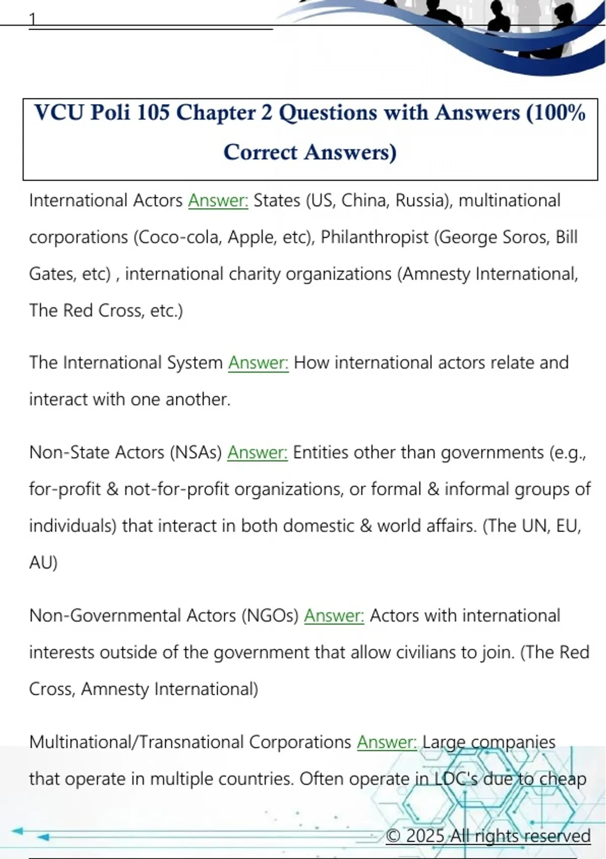 VCU Poli 105 Chapter 2 Questions with Answers (100%