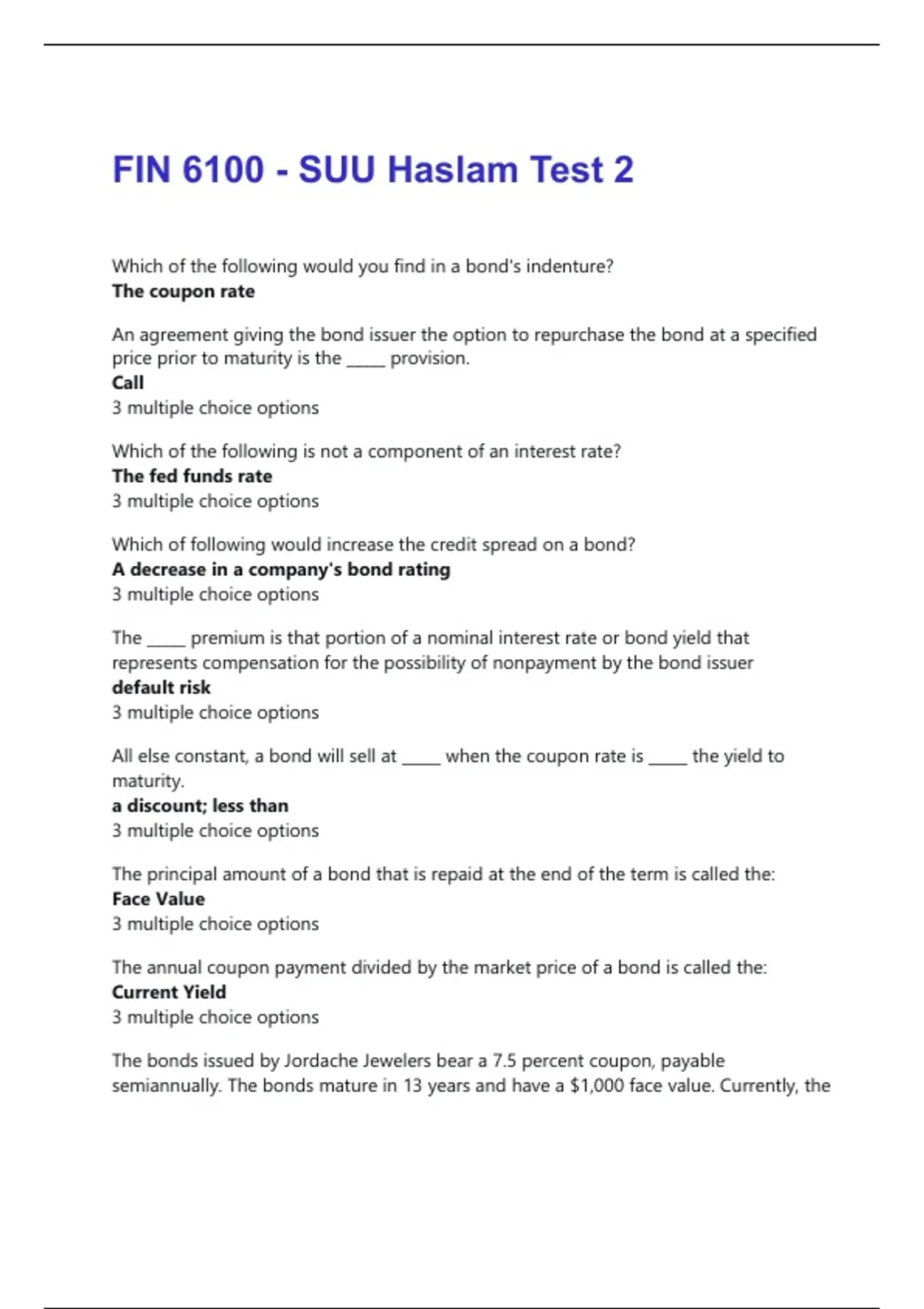 The bonds issued by Jordache Jewelers bear a 7.5 percent coupon, payable