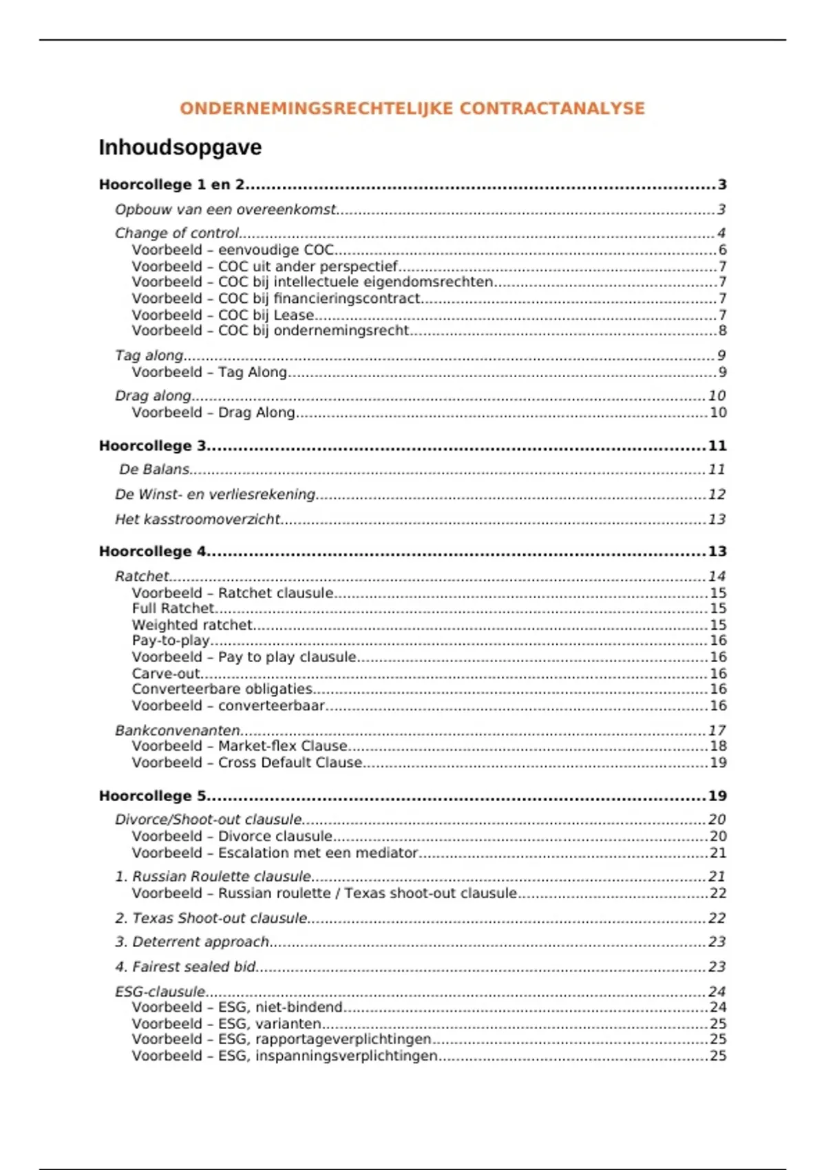 Voorbeeld – Ratchet clausule....................................................................................15