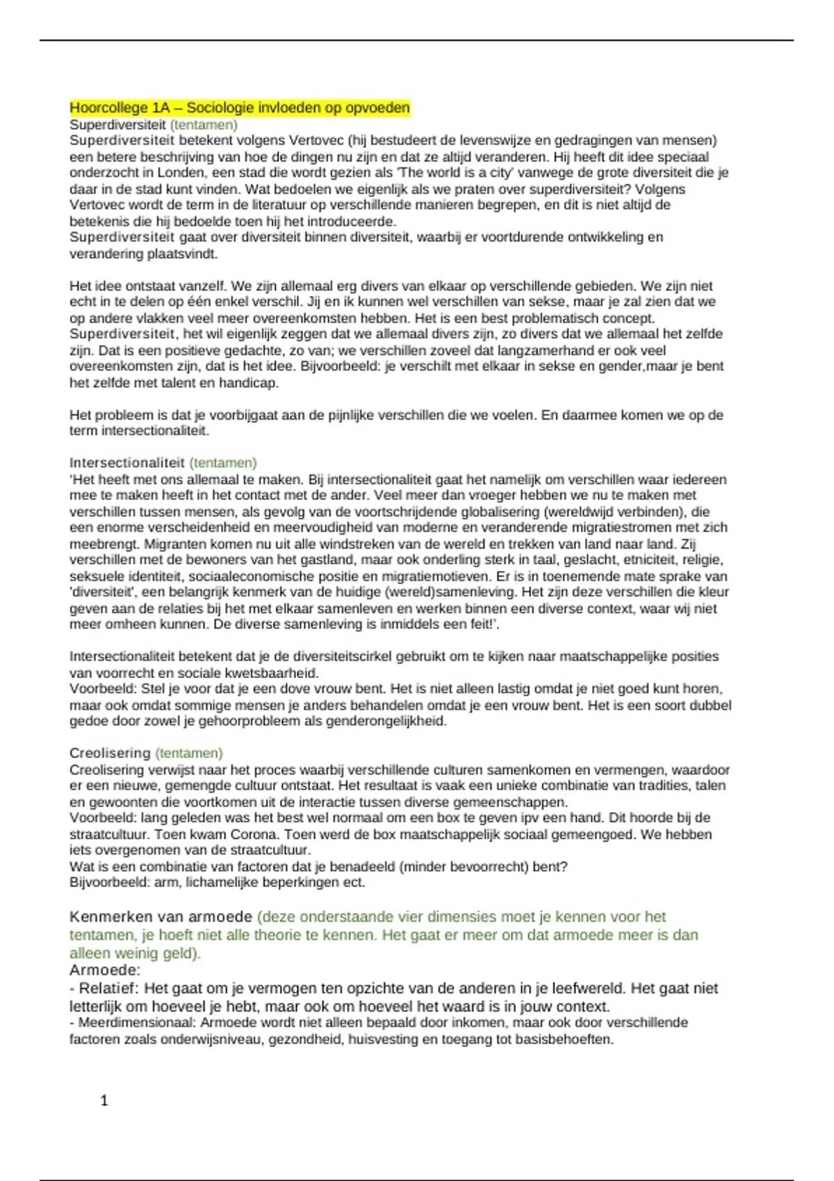 Hoorcollege 1A – Sociologie invloeden op opvoeden