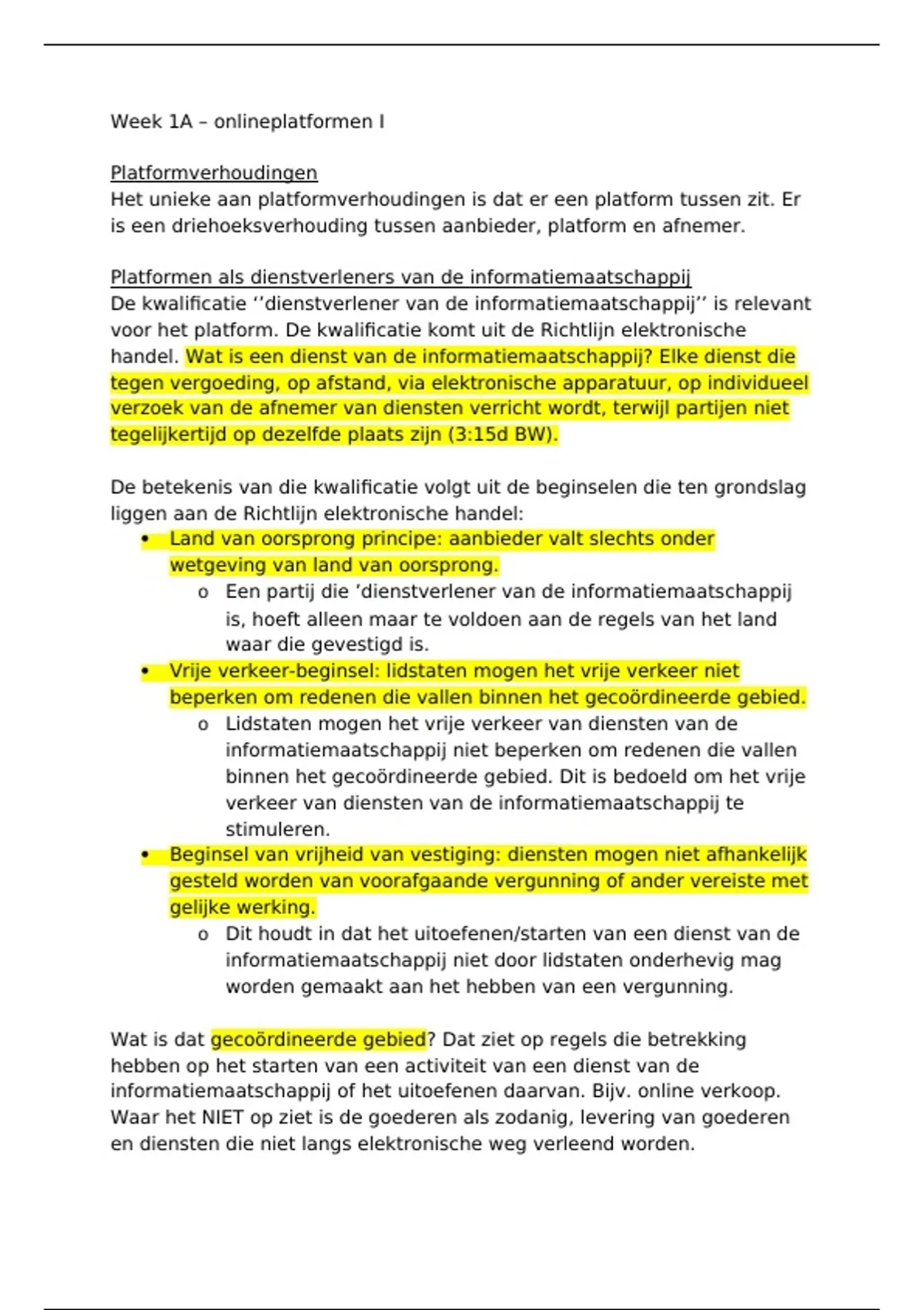 Uitgebreide hoorcollege aantekeningen e-commerce, consumentenbescherming en platformen