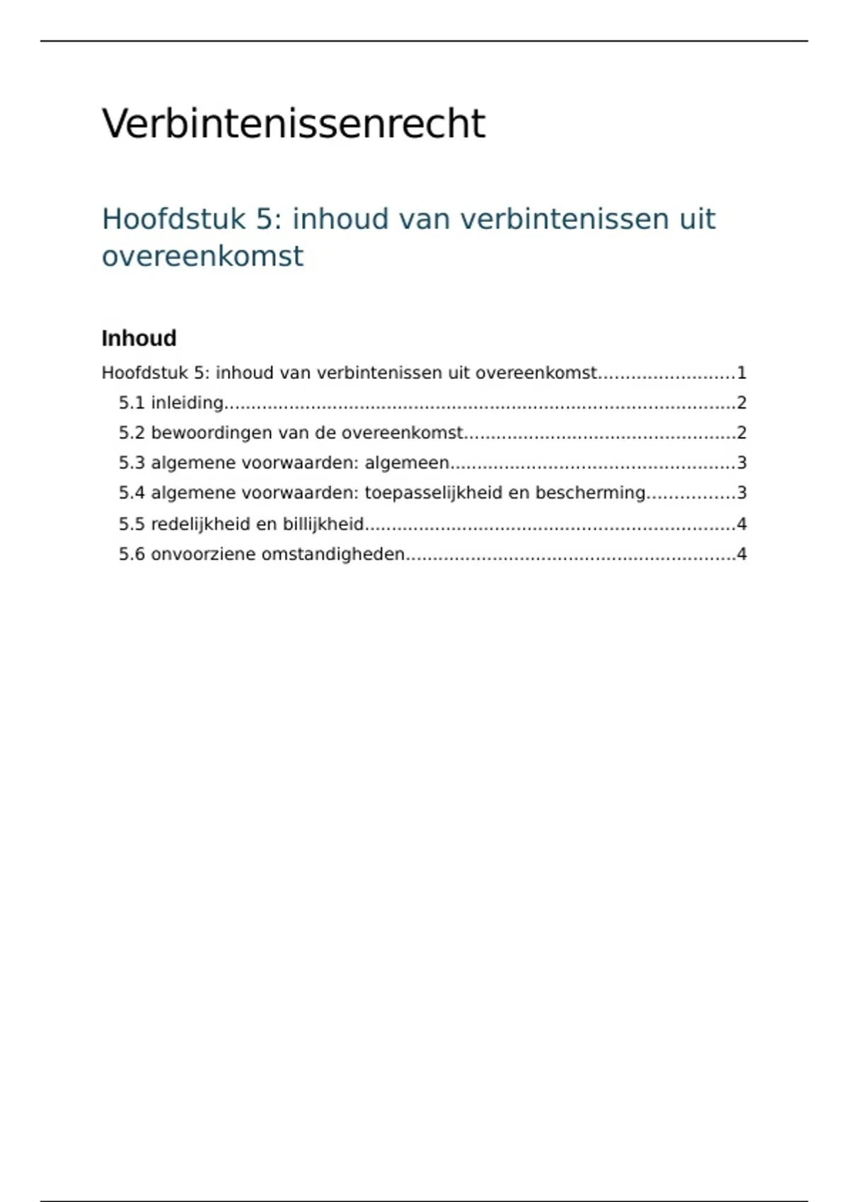 Hoofdstuk 5: inhoud van verbintenissen uit overeenkomst.........................1
