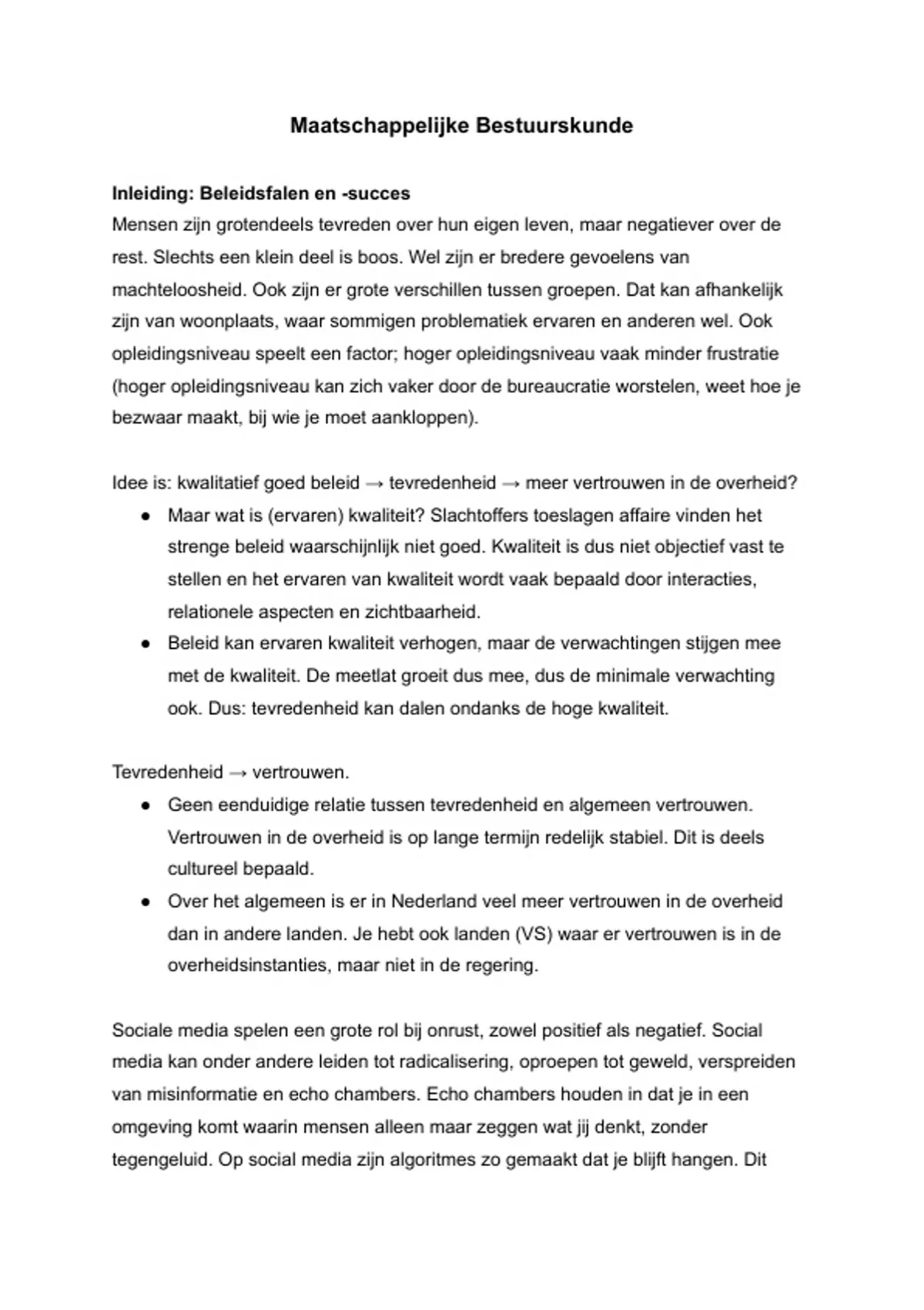 Idee is: kwalitatief goed beleid → tevredenheid → meer vertrouwen in de overheid?