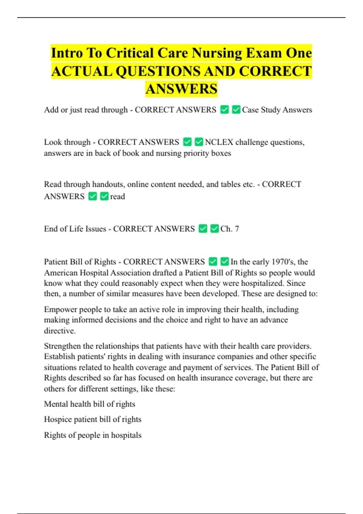 Patient Bill of Rights - CORRECT ANSWERS In the early 1970's, the