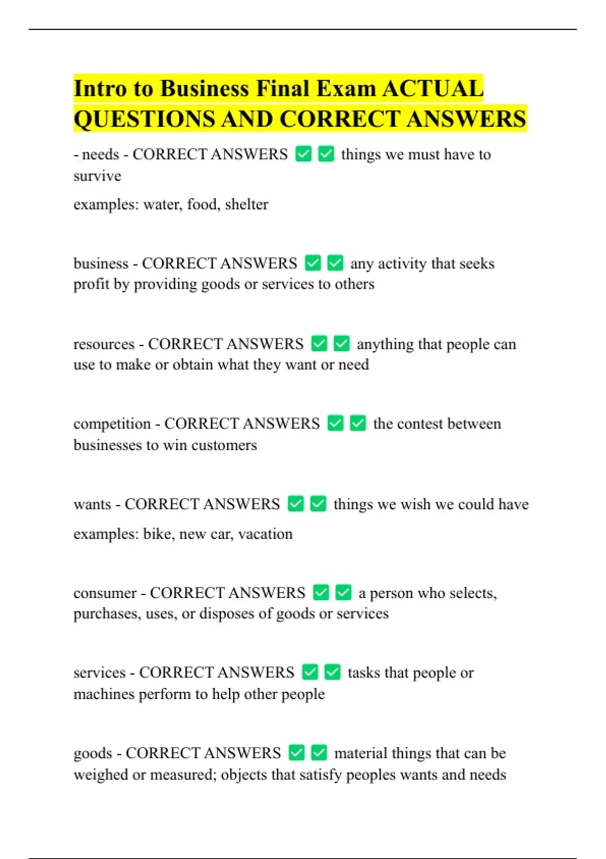 wants - CORRECT ANSWERS things we wish we could have