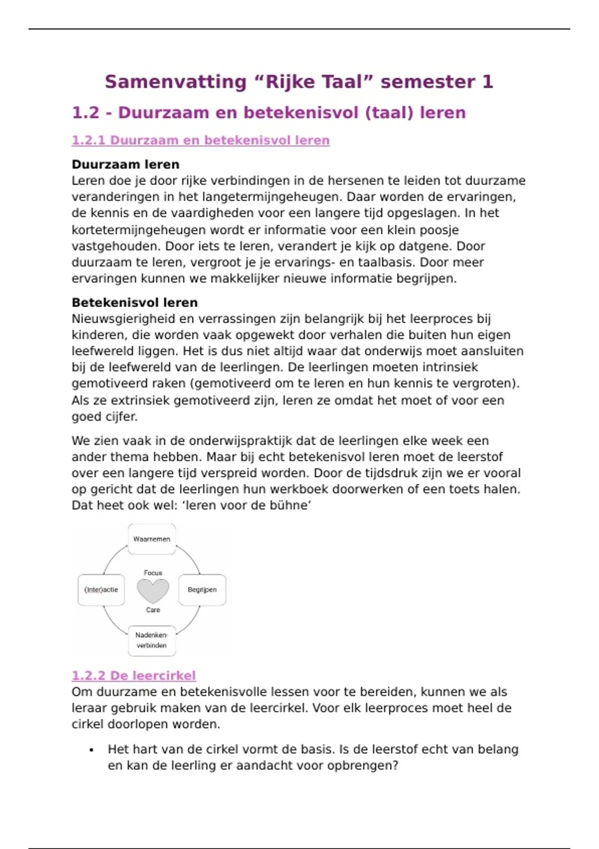 Samenvatting Rijke taal - Nederlands vaktoets PABO 1