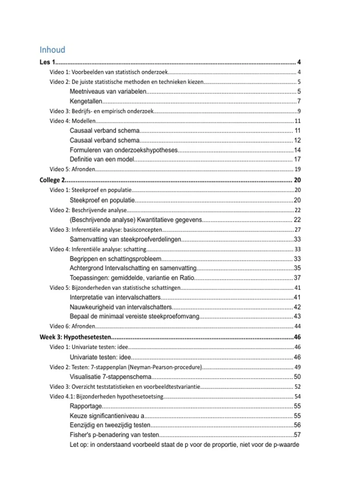 Week 4: Statistische methoden in onderzoek........................................................................ 67