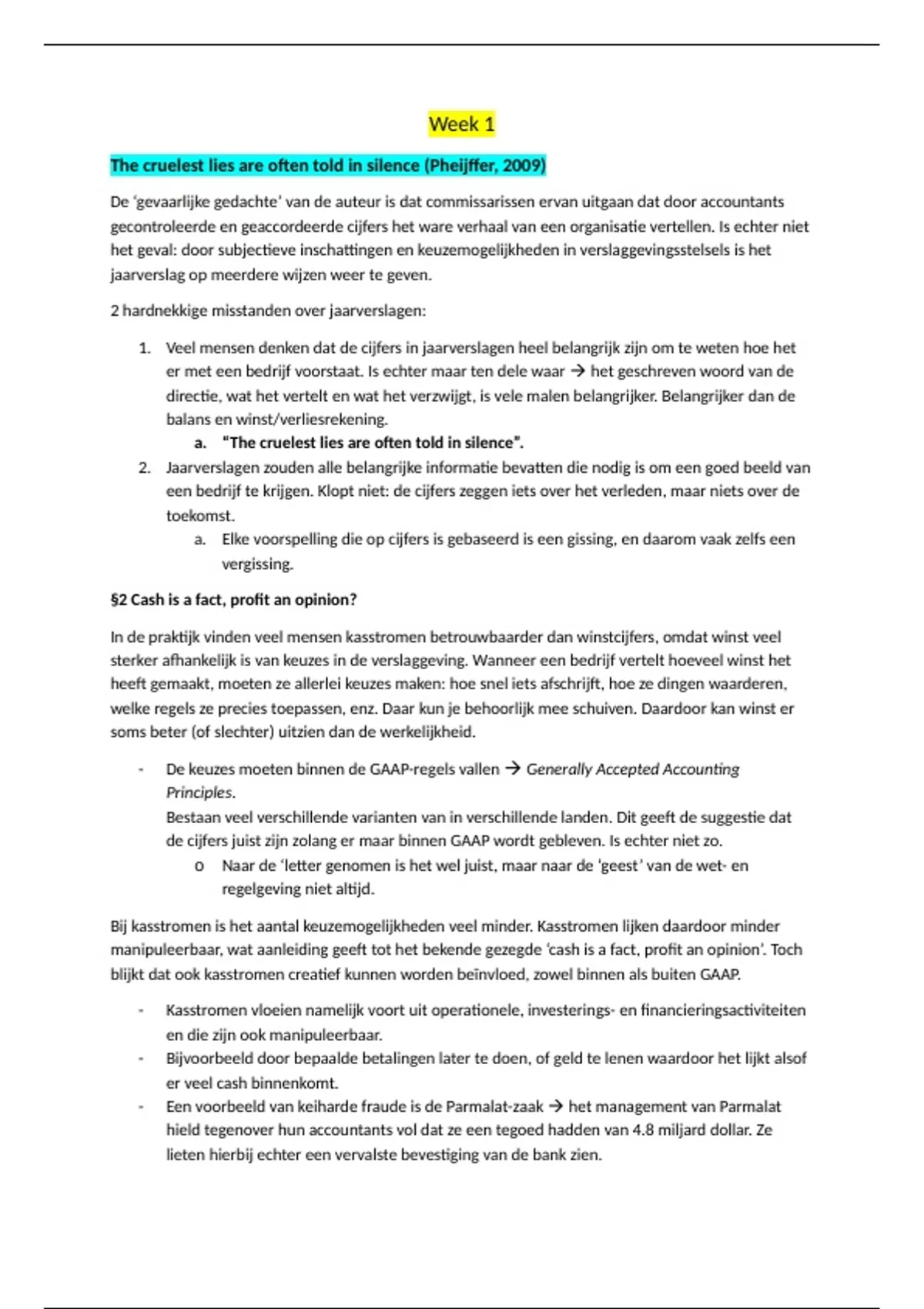 gecontroleerde en geaccordeerde cijfers het ware verhaal van een organisatie vertellen. Is echter niet