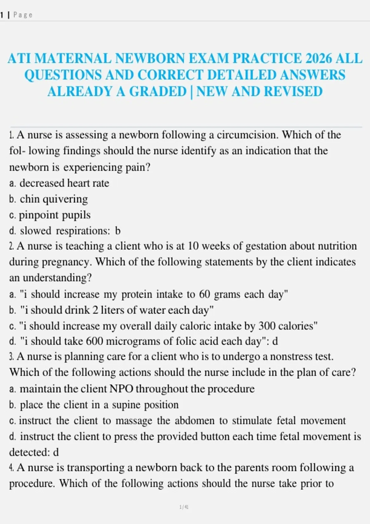 ATI MATERNAL NEWBORN EXAM PRACTICE 2026 ALL QUESTIONS AND CORRECT DETAILED ANSWERS ALREADY A GRADED | NEW AND REVISED