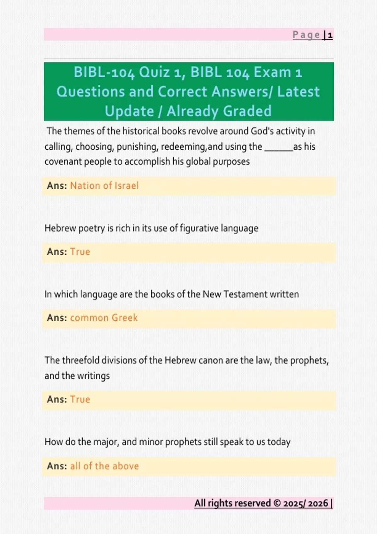 BIBL-104 Quiz 1, BIBL 104 Exam 1