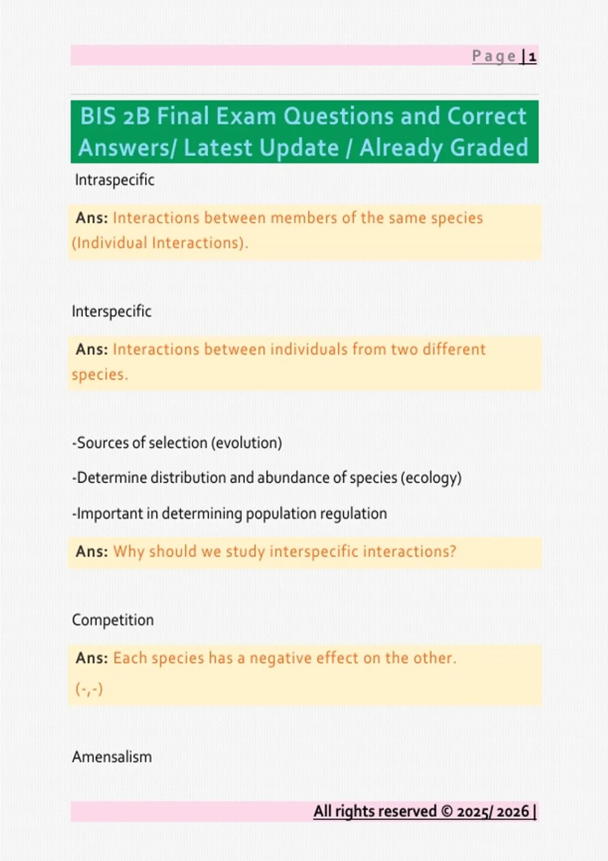 BIS 2B Final Exam Questions and Correct